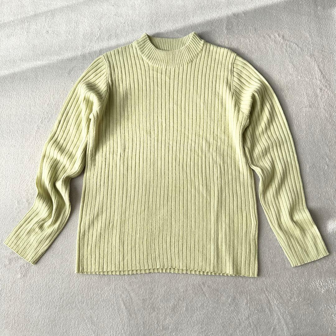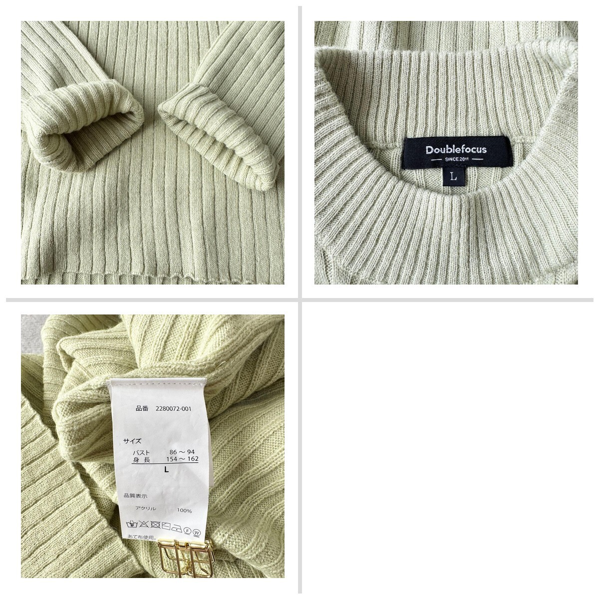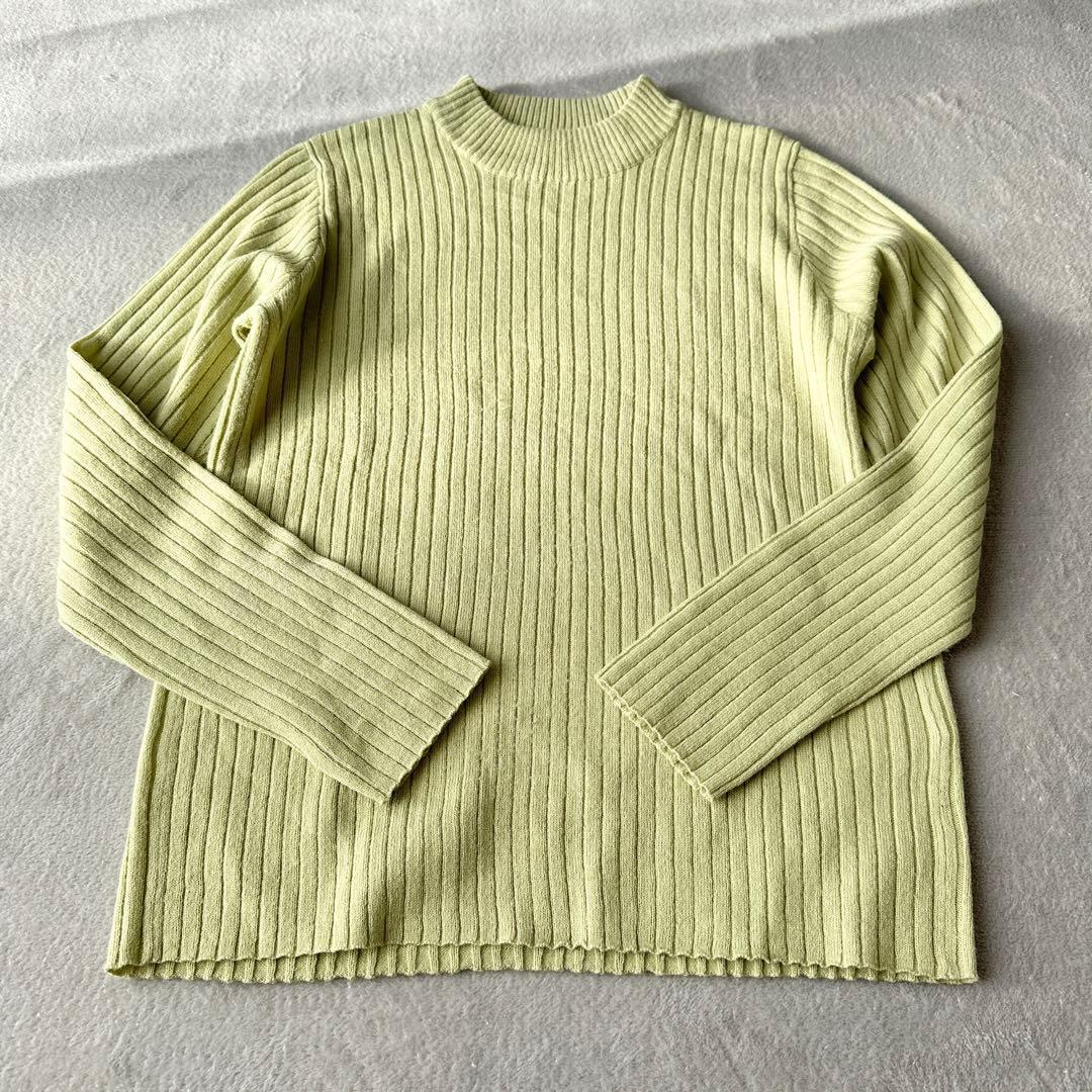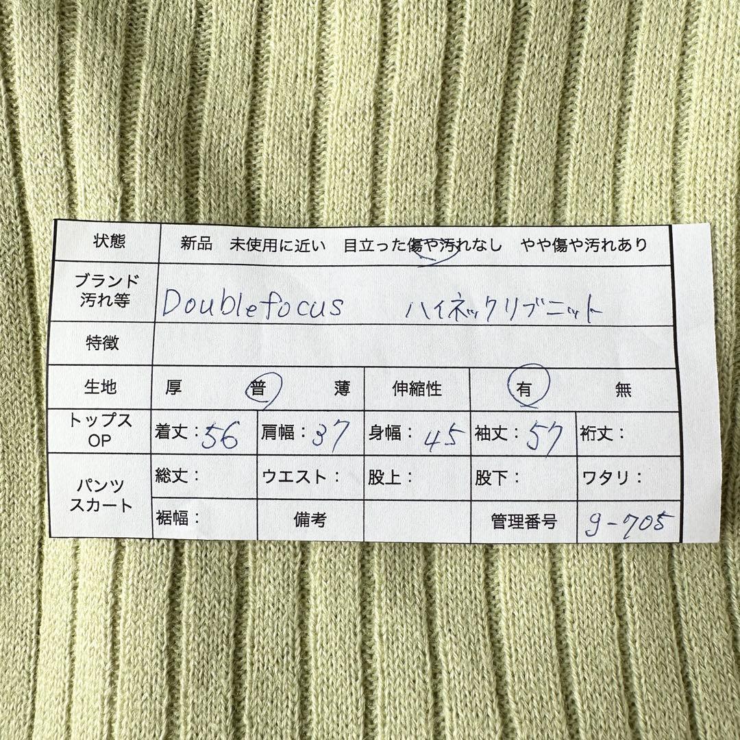 美品 ダブルフォーカス ハイネックリブニット 大きめ 無地 ライトグリーン L 00B86D