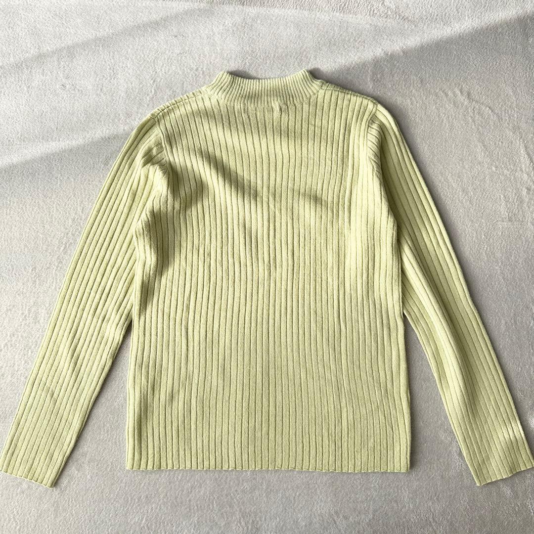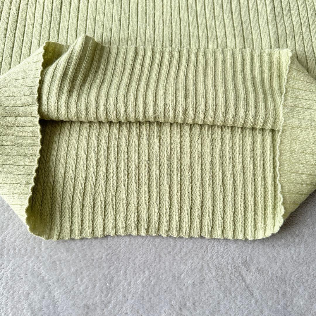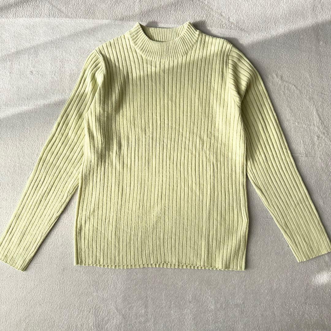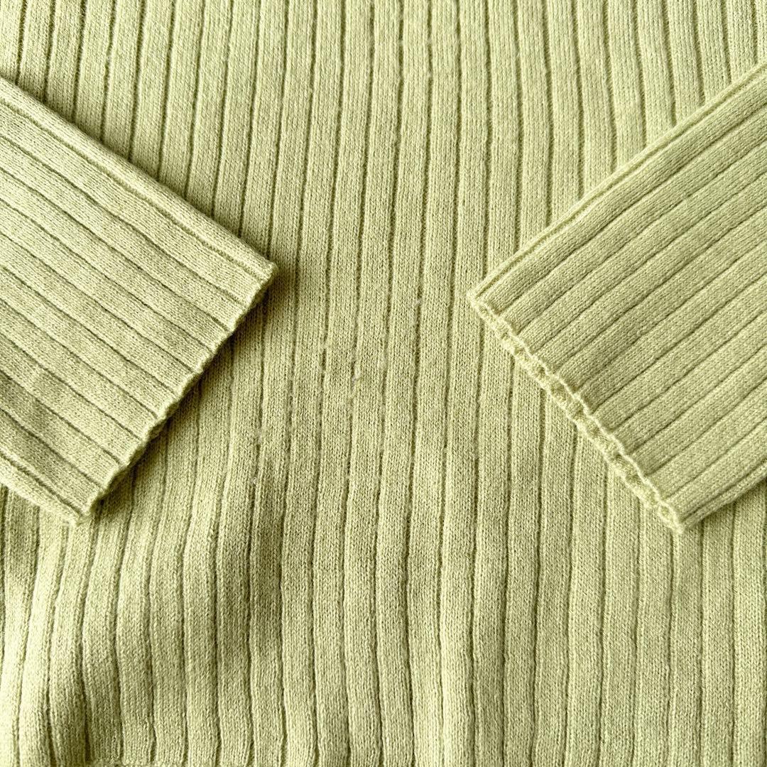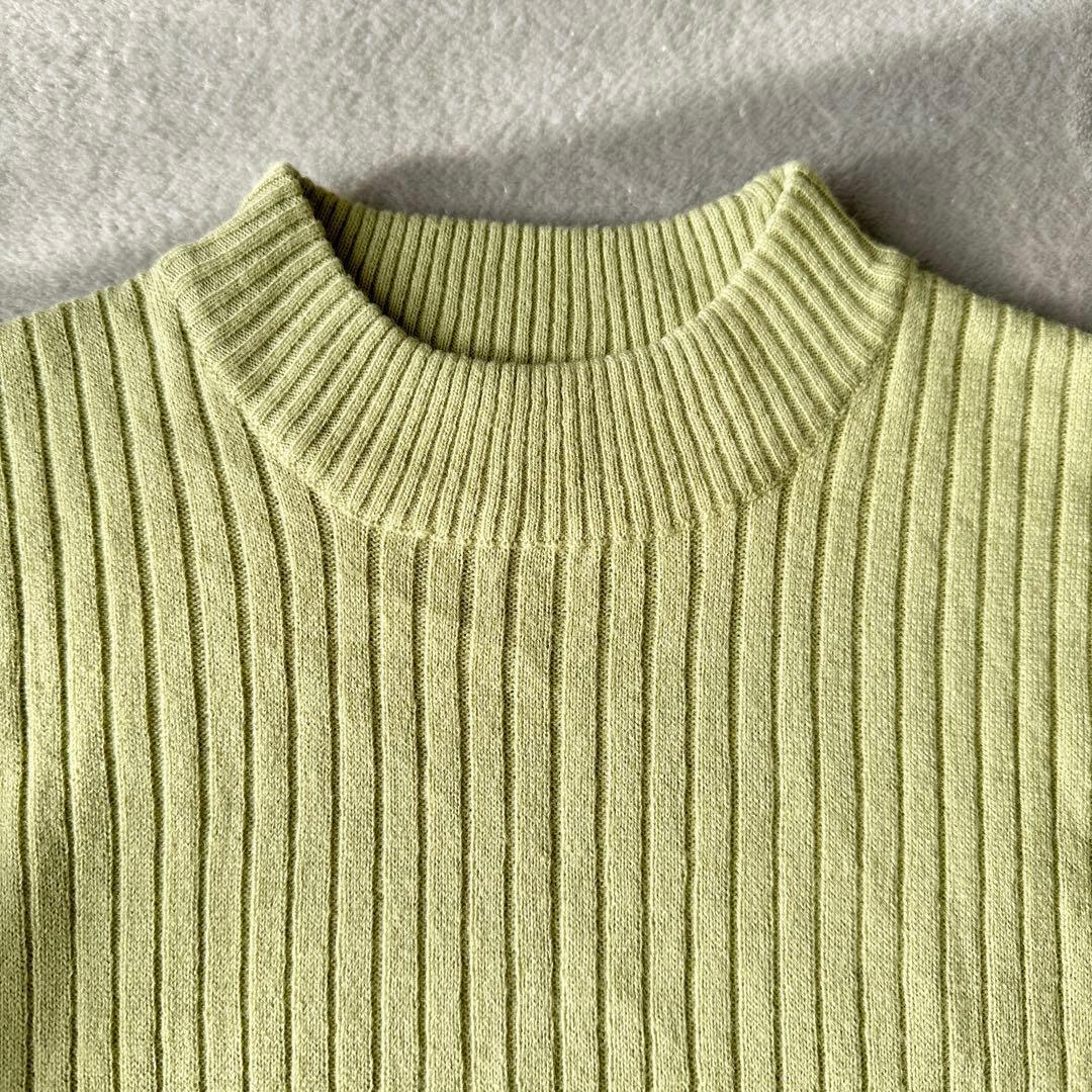 美品 ダブルフォーカス ハイネックリブニット 大きめ 無地 ライトグリーン L 00B86D