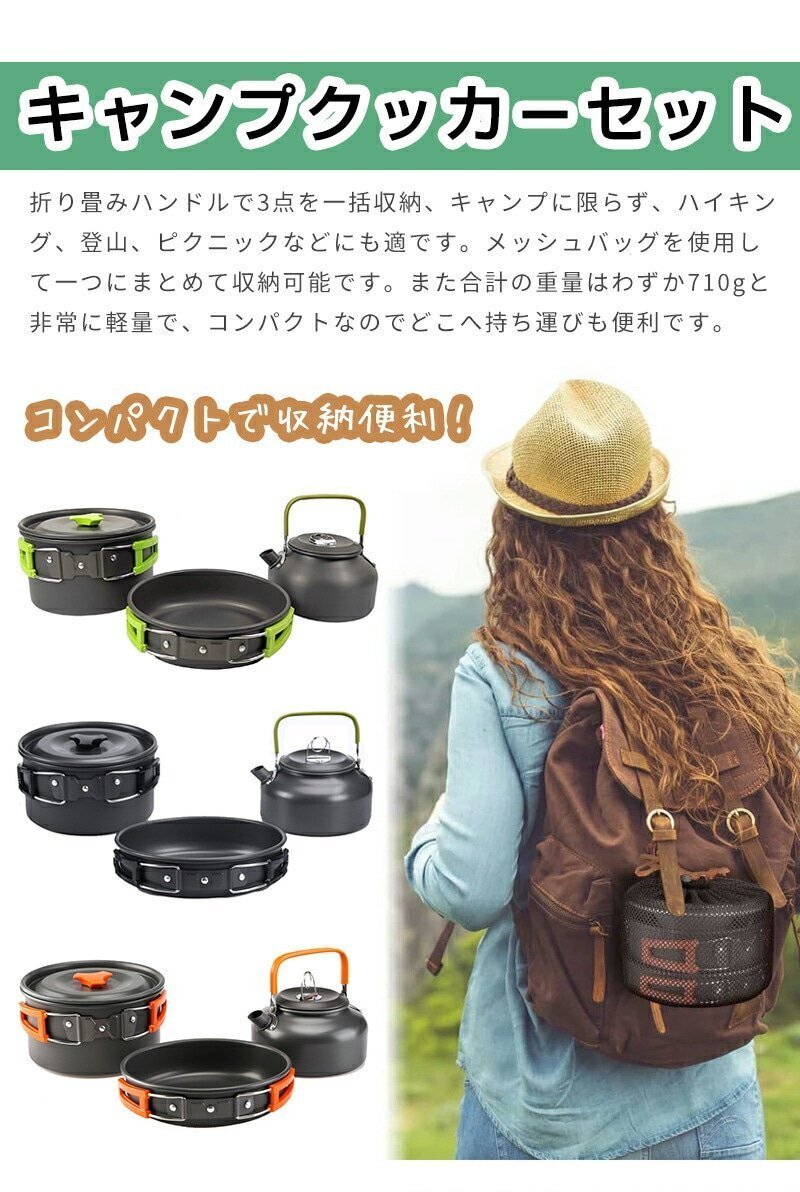 アウトドア 鍋 クッカーセット 調理器具 アルミニウム 軽量 鍋 ケトル キャンピング 9点セット 2~3人用 収納袋付き lhw002