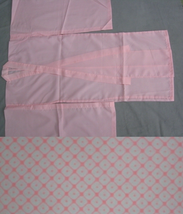 長襦袢(ながじゅばん)は、鹿の子絞りの柄にピンクで染めてあります。