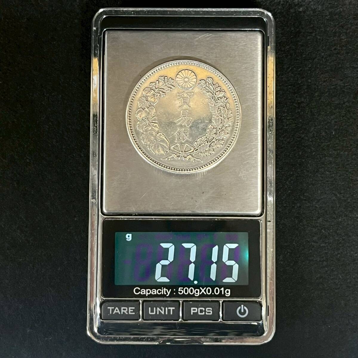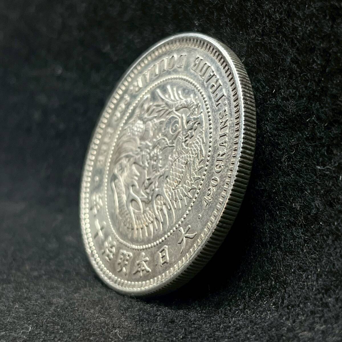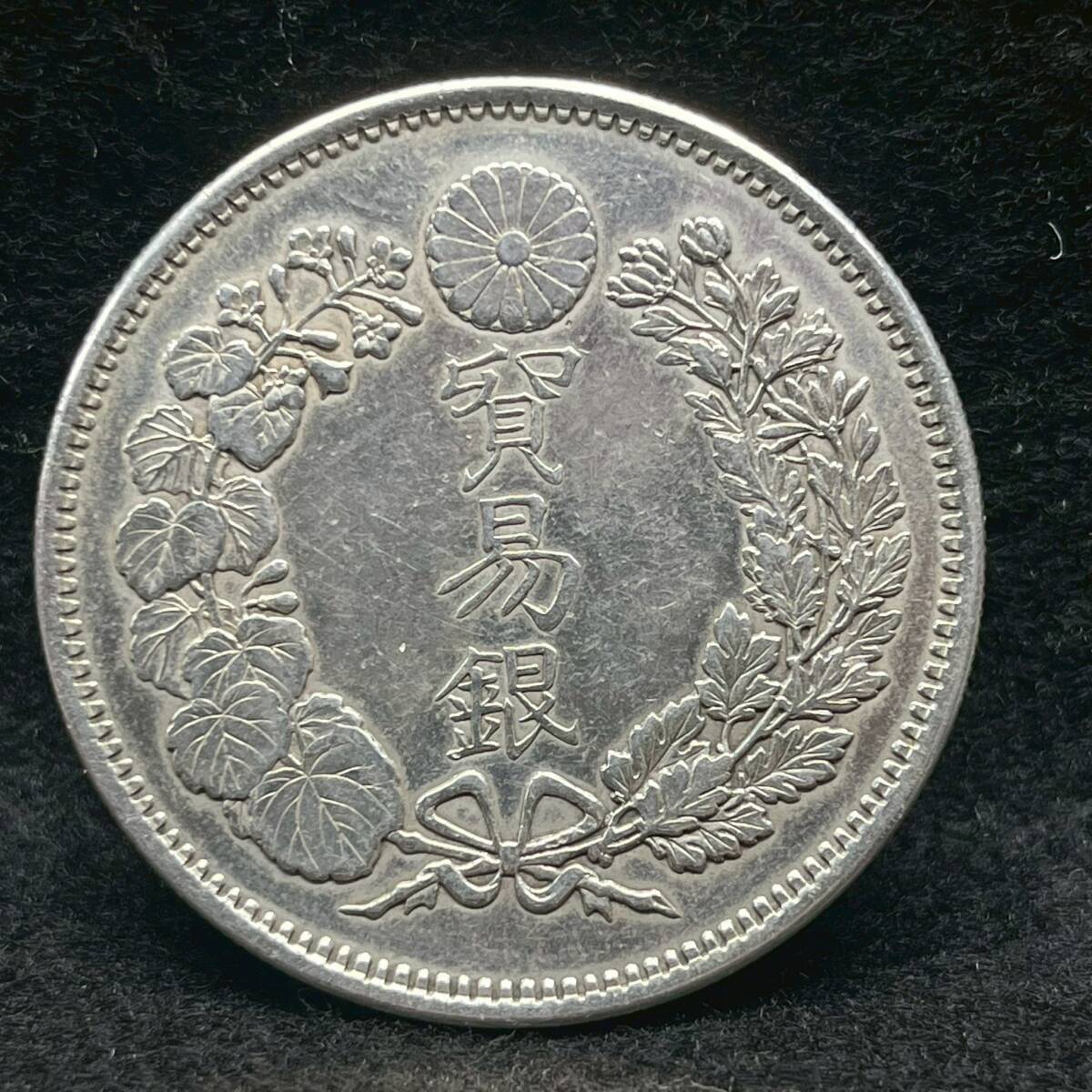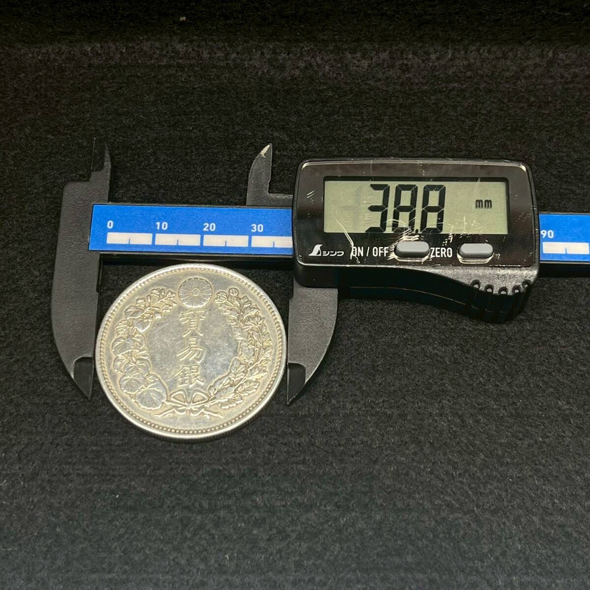 商品:1円~【コレクター放出品】貿易銀 明治10年 直径約38.8mm 厚さ約2.5mm 量目約27.15g 銀貨 円銀 コイン 古銭 アンティーク シルバー K101998