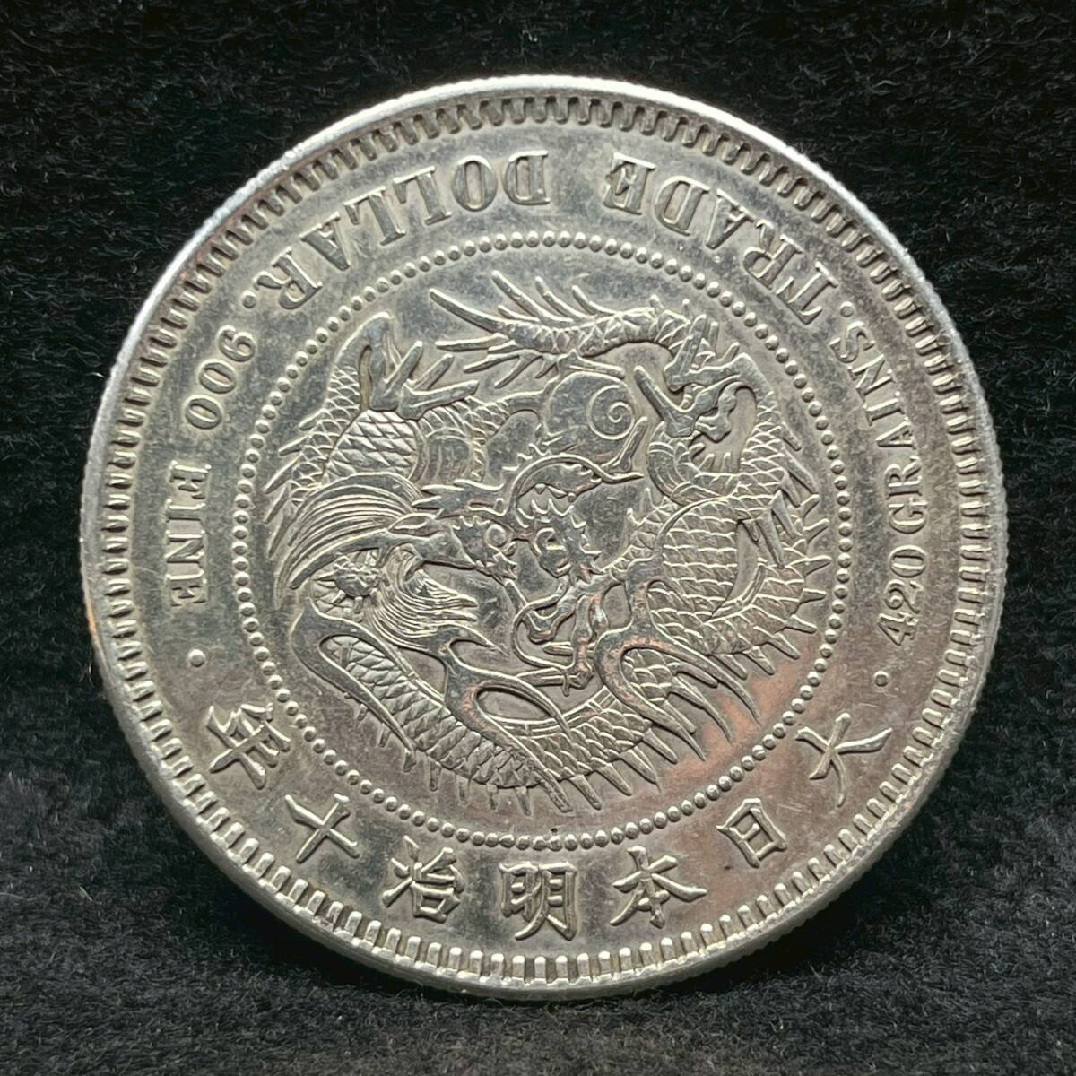 1円~【コレクター放出品】貿易銀 明治10年 直径約38.8mm 厚さ約2.5mm 量目約27.15g 銀貨 円銀 コイン 古銭 アンティーク シルバー K101998