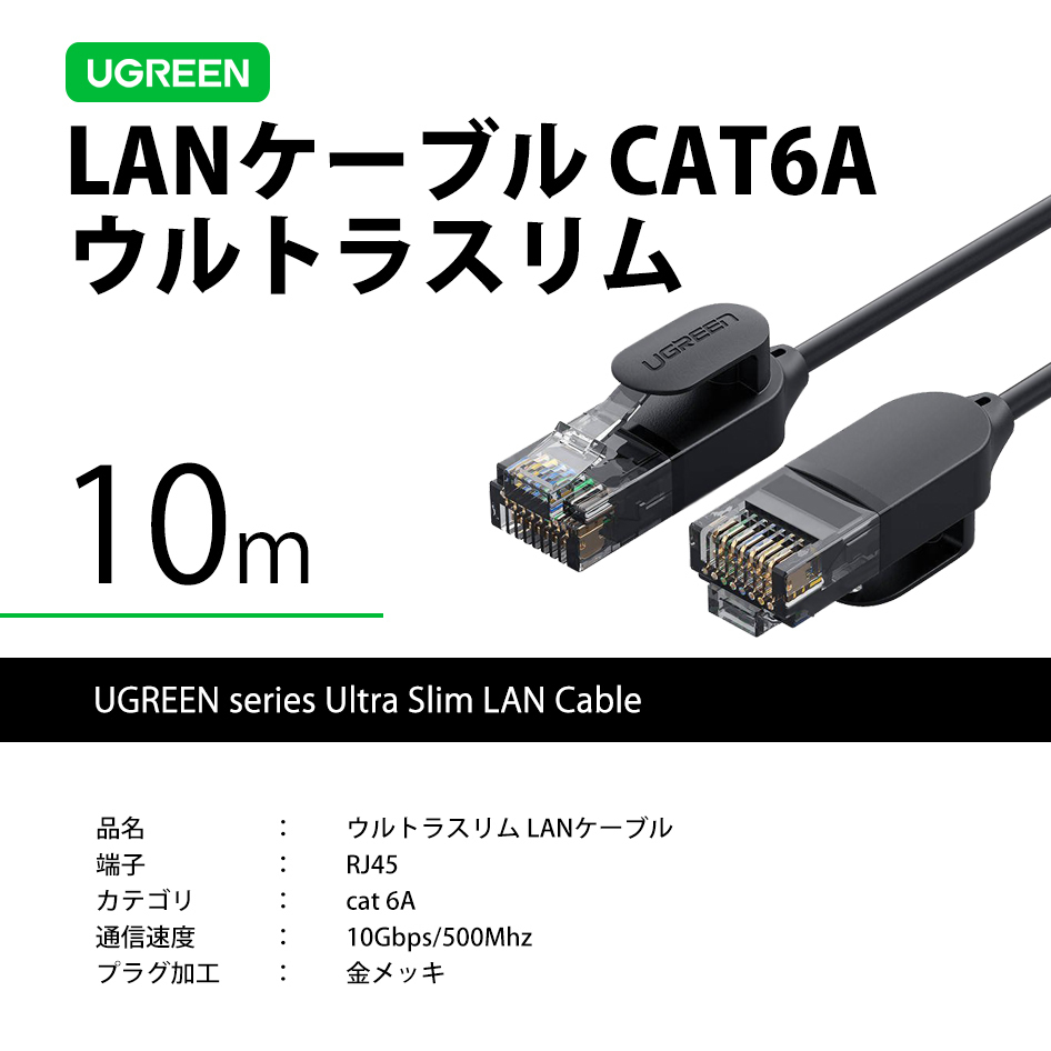 <ハイエンドモデル UGREEN 70656 LANケーブル ウルトラスリム CAT6A 10m 10ギガ 高速通信 送料無料>
