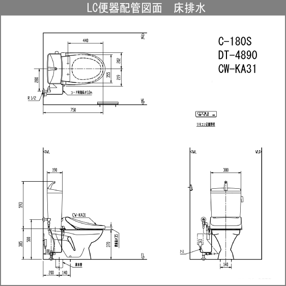 便器 LC便器(手洗付) シャワートイレセット(壁リモコンタイプ) C-180S,DT-4890,CW-KA31 リクシル イナックス LIXIL INAX ★