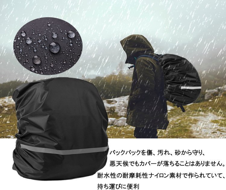 ◆リュックレインカバー 登山 自転車 軽量 通学 通勤 アウトドア 防水カバー ナイトセーフティ 反射ストリップ 雨、雪、湿気や汚れからバックパックを保護 バックパック用レインカバー 耐摩耗性 20L 25L 40L 55L 70L 撥水 ザックカバー BAPAC01/Mサイズブラック