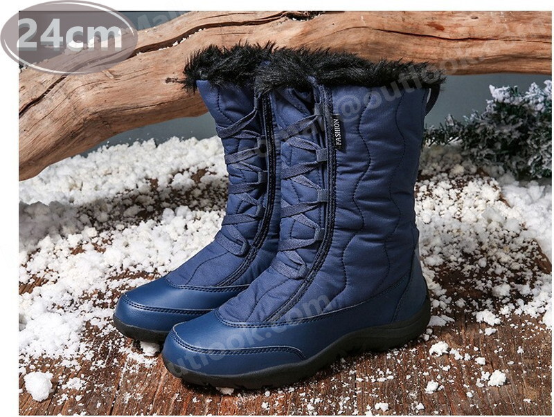 レディース スノーシューズ 【970】 ブルー 24.0cm ムートンブーツ スニーカー ウィンターブーツ 裏起毛 防水 防寒 防滑 冬用靴 綿靴
