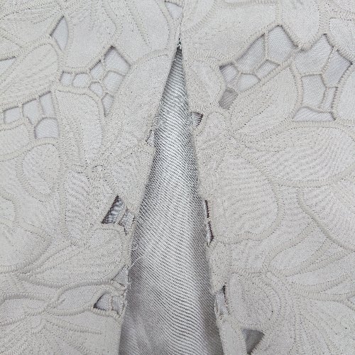 表生地に毛玉あり。スリット部分の縫い目に広範囲のほつれあり。