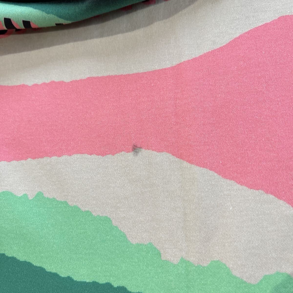 撮影のときは気づきませんでしたが、黒い汚れが付着していました(8枚目)洗濯で落ちるものかは判断できません。