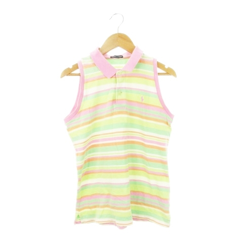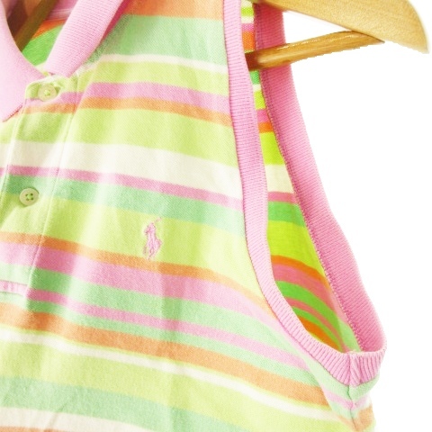 ラルフローレン RALPH LAUREN ポロシャツ ノースリーブ ロゴ刺繍 ボーダー 女の子 ガールズ 160 ピンク /AH6 ■GY99 キッズ