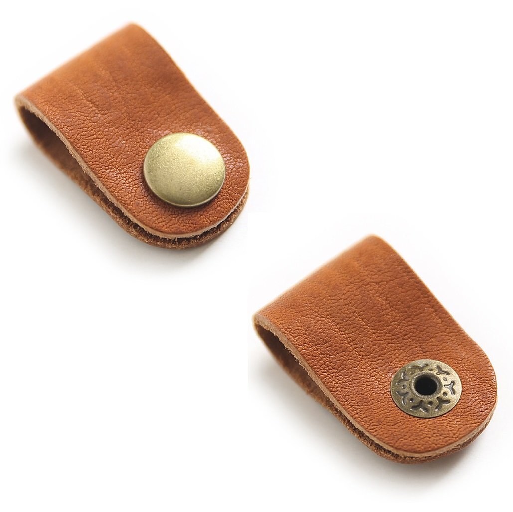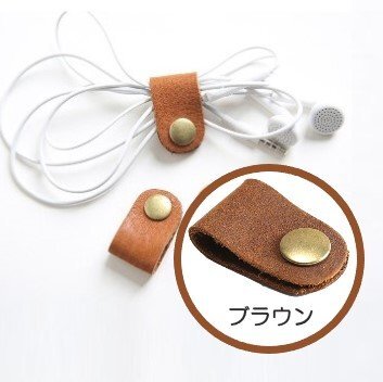 本革 コードクリップ ブラウン ケーブルクリップ ケーブルフォルダー イヤホンコード 巻取り 充電ケーブルホルダー