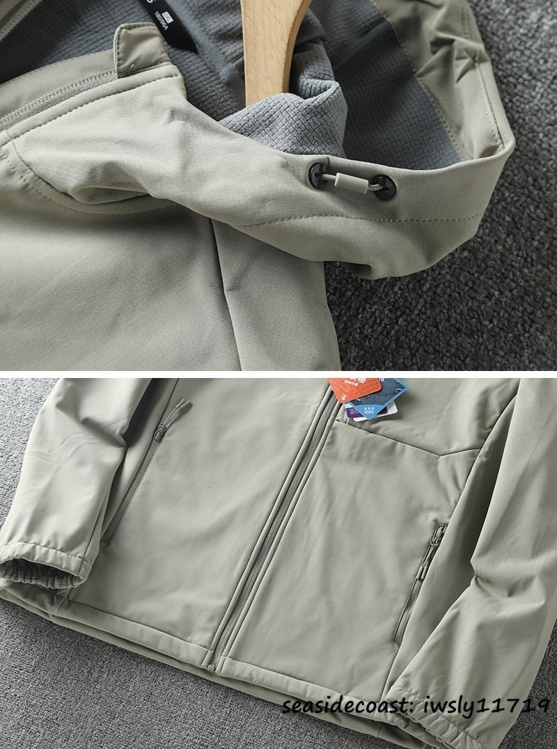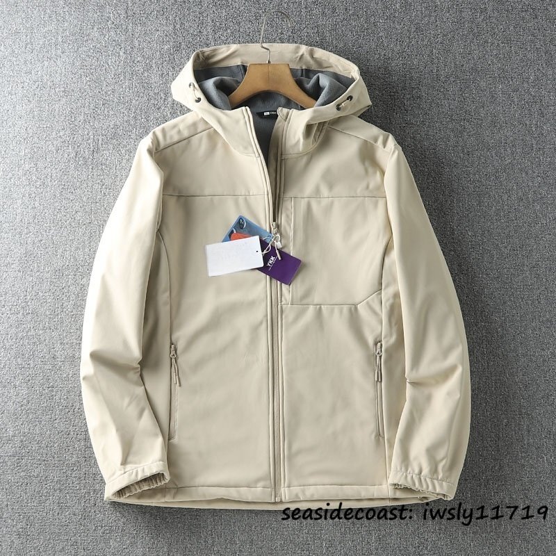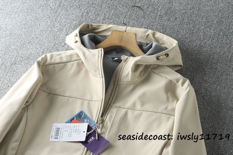 新品*マウンテンパーカー メンズ フリースジャケット フード付き 撥水 防風 防寒 秋冬 アウトドアウエア アウター 登山 釣り ベージュ 3XL