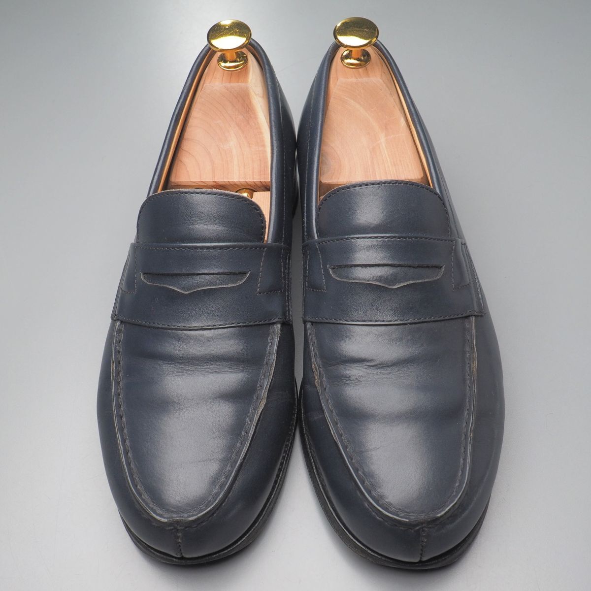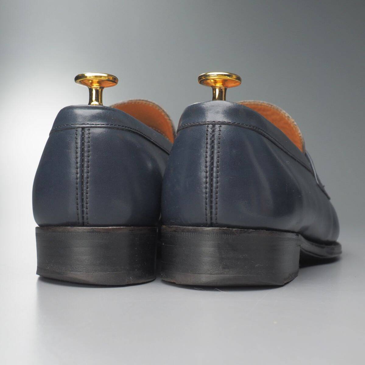 1889年に設立された英国の老舗シューメーカー「アルフレッドサージェント」の一足です。 上位ラインに位置付けられるエクスクルーシブコレクションのコインローファー「キャラハン/CALLAGHAN」 程よいハリと柔軟性を併せ持つ紺のスムース革をアッパーに用いたハーフサドル仕立てのコインローファー。 底付けにはグッドイヤーウェルテッド製法を採用し堅牢に形成。 ライニングの小窓やヒドゥンチャネルといった凝ったディテールもポイントです。 製法:グッドイヤーウェルテッド アウトソール:レザー トップリフト:レザー×ラバー ライニング:レザー 生産:イングランド製 ※撮影用のシューキーパーは付属致しません。 ※本物の商品ですのでご安心の上オークションをお楽しみ下さい。 ※タイトル頭の英数字は弊社の管理番号です。 ※ほかにも多数の商品を出品しています。 ※同梱に関しましては「まとめて取引」でのみ対応可能です、その他の方法での同梱対応は出来かねます。 (※商品の特性上、同梱対応出来ない商品もございますので予めご了承下さい。) |