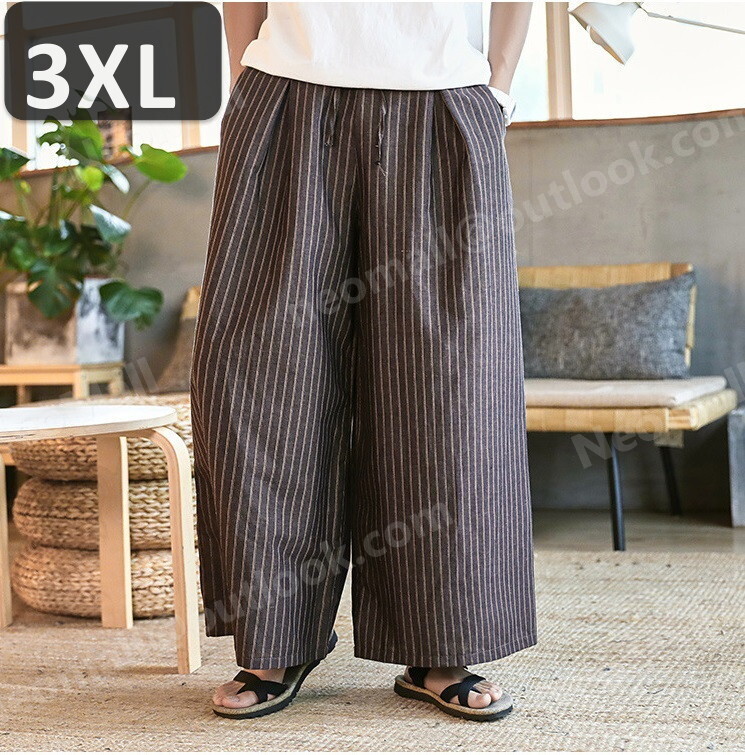 お買い得☆メンズ ワイドパンツ ブラウン 3XL カジュアル ロングパンツ スウェット 無地 ポケット付 オールシーズン【065】