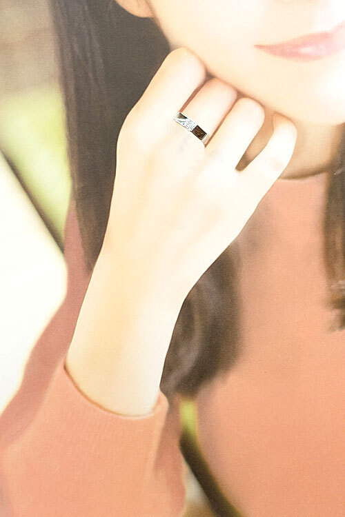 コメントタサキの、エッジのある直線的なラインがスタイリッシュな雰囲気のダイヤモンドリングです。ブラウンカラーの落ち着いた光沢のシェルが、シックな印象を演出してくれます。