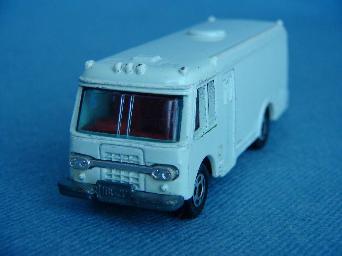 1980年頃古い日本製トミカ・いすず旧型献血車/TV中継車・白一色/サンプル?エラー?