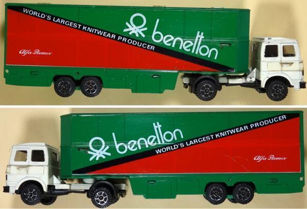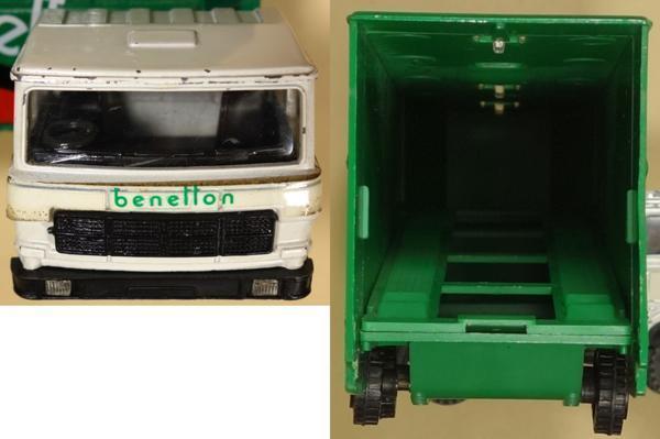 イタリア製です。出品は画像の物のみです。年代的にこれが活躍したのは1984年かと思います。日本や海外のF1関連サイトでもほぼ見つけるのが難しいのではないでしょうか。使用品ですので汚れや擦れが有ります。擦り傷などもあります。上部の窓などが一つないです。トレーラーの扉がとれて紛失しております。ネジなど若干錆が有ります。ステッカーが剥がれたり剥がれそうになっている箇所もあります。このメーカーのF1ミニカーが2台つめるようになっています。これと同時期のF1ミニカーを見つけるのはかなり難しいと思います。トラクターはFIAT 170です。本体を手で押せばタイヤなどは回転します。特に目立つような破損は確認出来ませんでしたが、古い物ですので万が一破損が有ったとしてもノークレームです。