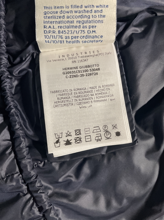 モンクレール  HERMINE ダウン コート、サイズ1、ネイビー、美品、認証タグあり。