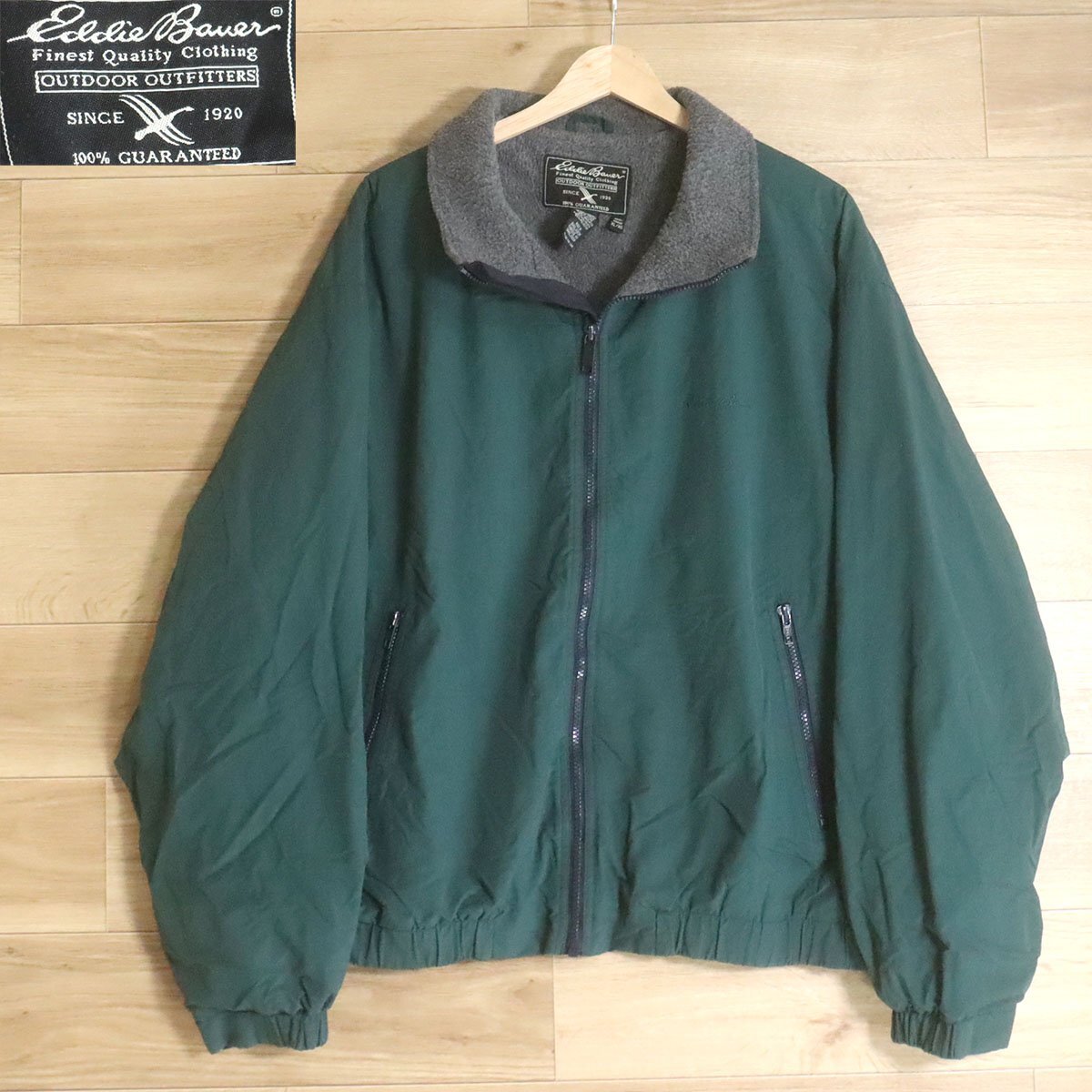 E8S/O9.1-5 Eddie Bauer エディーバウアー ナイロンジャケット 裏フリース ジャンパー ブルゾン アウトドア XL グリーン系