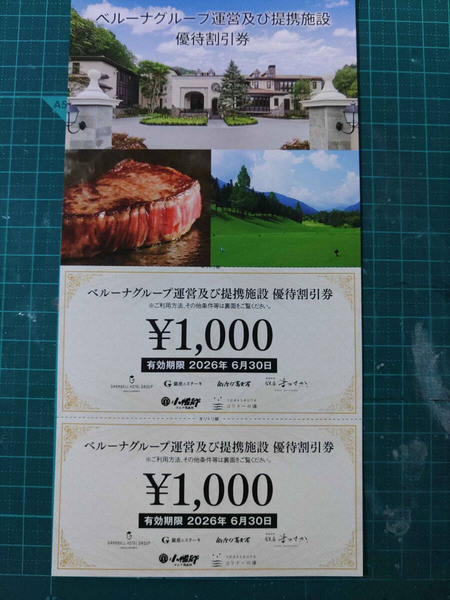 ベルーナ株主優待券 ベルーナグループ運営 施設割引券 2000円分 有効期限2026年6月30日