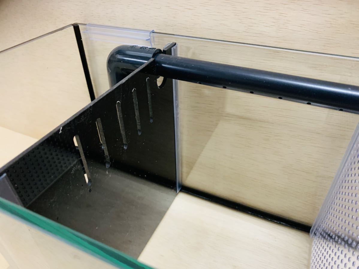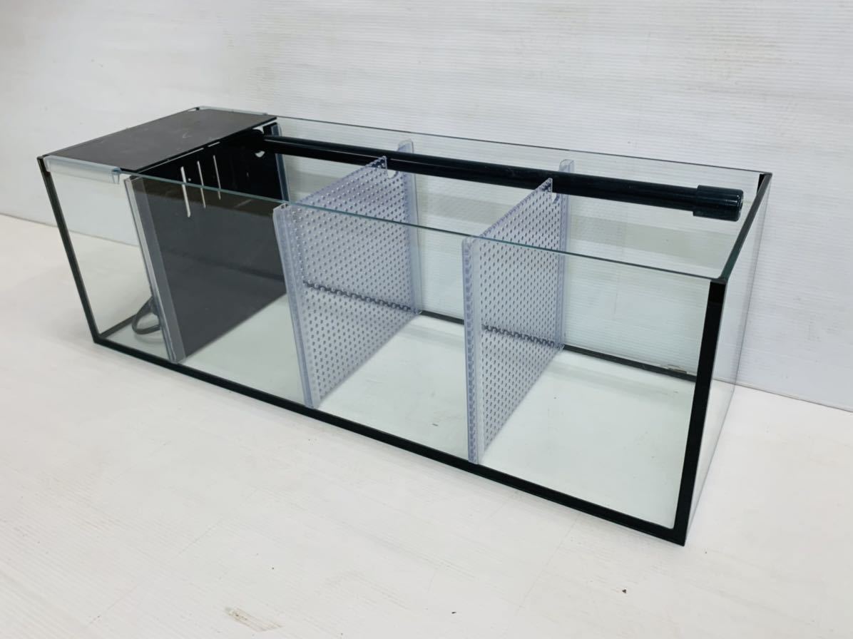 ☆オールガラス特注600×200×200 3室水槽 パンチング仕切り板+水中ポンプ付 ブラックシリコン ブラック仕切り仕様 未使用品☆
