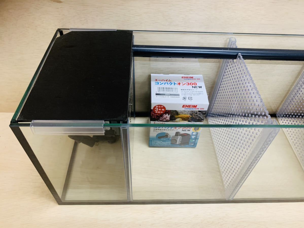 ◆ポンプ室にスポンジマットと濾材を入れ使用したり、お好みに応じて使用できるよう製作しました。※エーハイムコンパクトオン300(Newタイプになります。)をセットしてありますが飼育生体の種類、サイズ、数に適しているかは分かりませんのでご了承くださいませ。また、発送時はポンプは箱から出してセットして発送をさせて頂きますのでご了承ください。