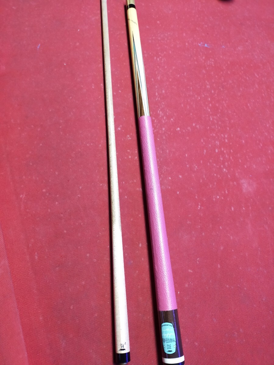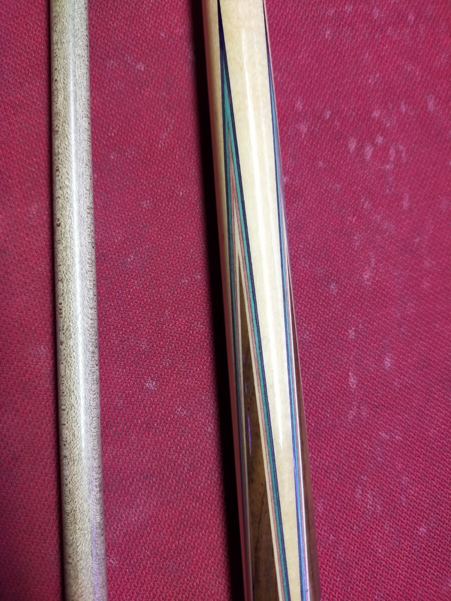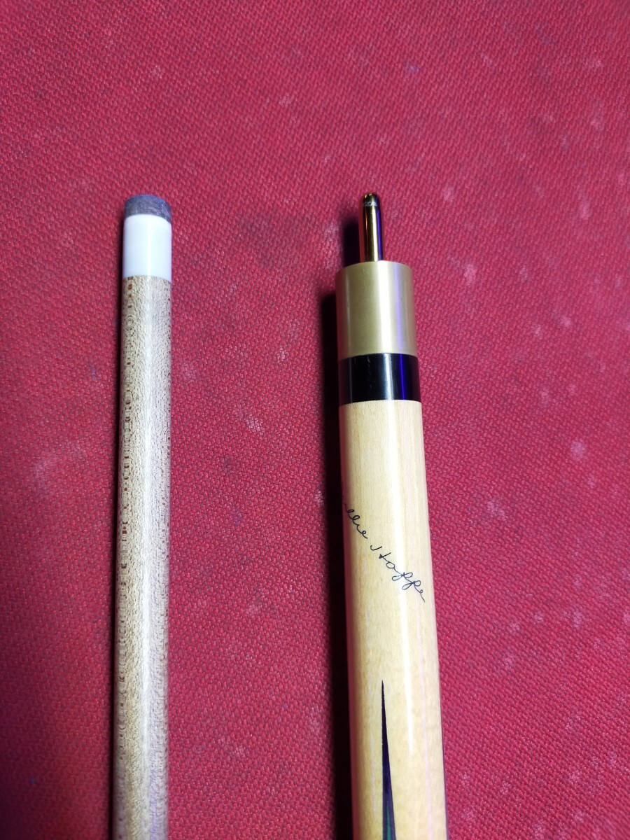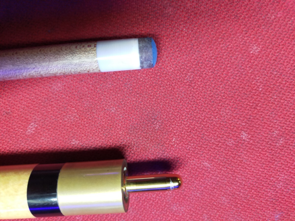 使用に伴う小傷はありますが凹み、割れなど目立つ傷はありません。転がしてほんとにわずかなバタつきはありますが全然気にならず、プレーにも支障ありません。シャフトはサンディング歴なし、タップはメーカー忘れましたがプレスしてるファイバーがついてます。グリップはご覧の通り貼り変わってます。