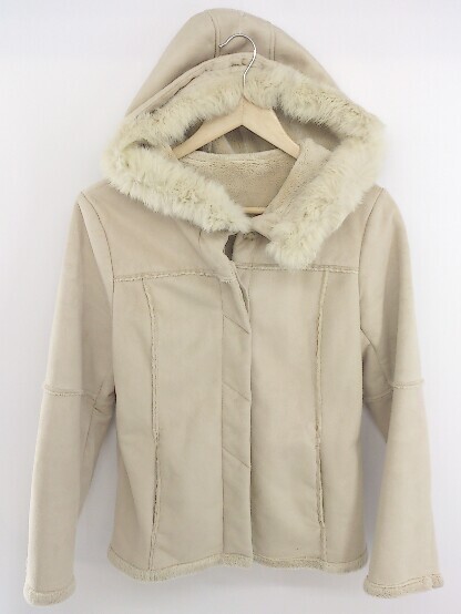 ◇ PEYTON PLACE ラビットファー 裏ボア スウェード風 長袖 ジャケット コート サイズM ライトベージュ系 レディース P