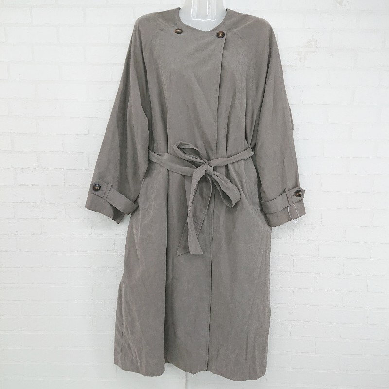 ◇ ◎ nano universe ナノ ユニバース スエード調 ノーカラー 薄手 長袖 コート サイズ36 グレー系 レディース P