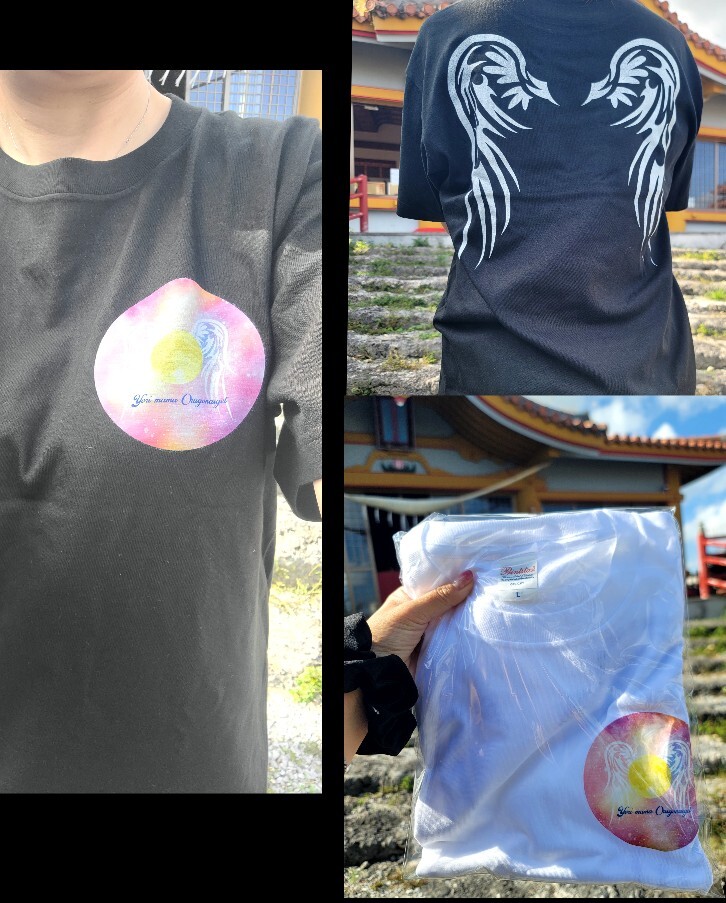 ブランドロゴである『月と天使の翼』をフロントに、背中には大きな羽をデザインした特別仕様のスピリチュアルTシャツです。