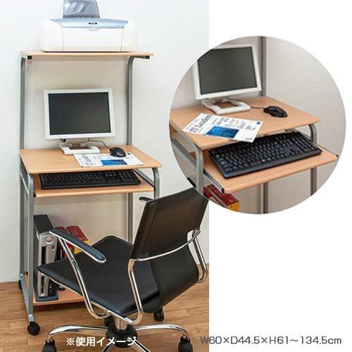 パソコンデスク 机 PCラック 幅60cm ベーシック パソコンラック 上棚 プリンタ台 スライドテーブル キャスター付 ナチュラル 送料無料