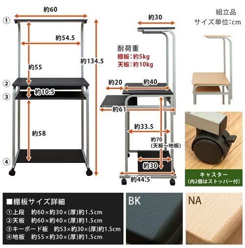 ■ 材質:耐荷重 天板:約10Kg / 上・下棚:約5Kg