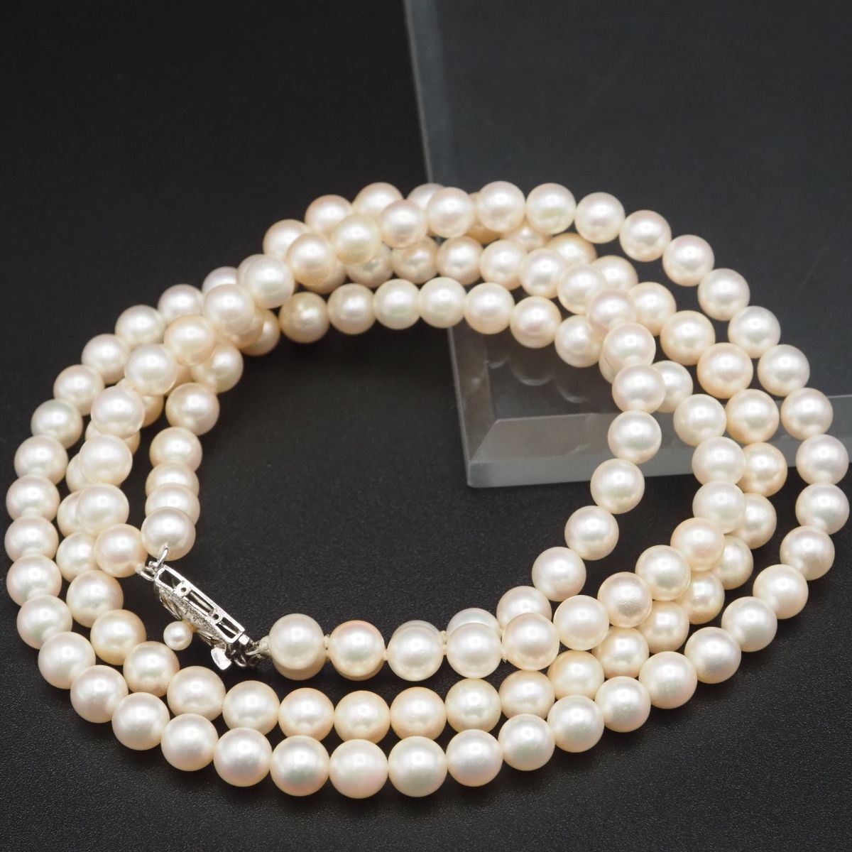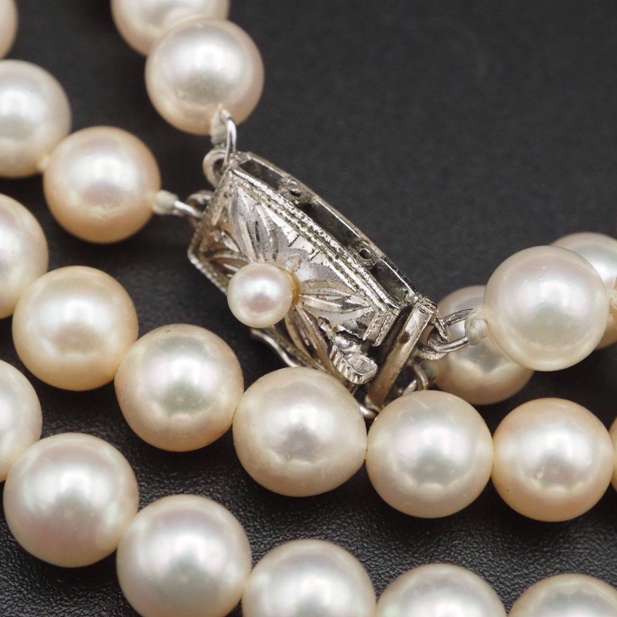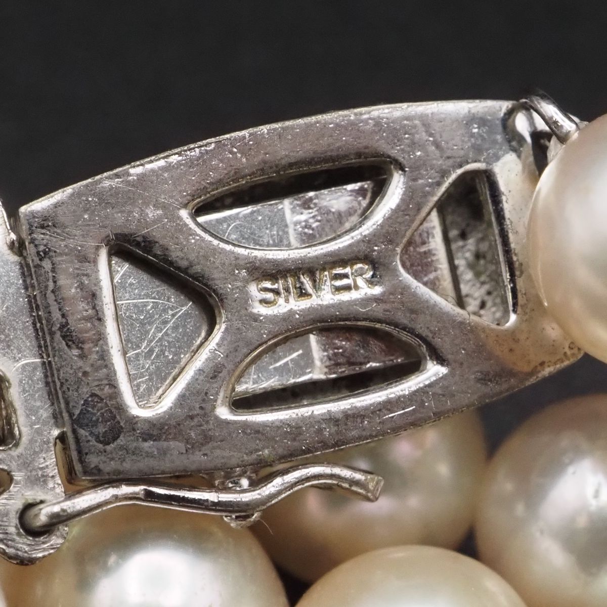 J875 本真珠 6.3mm珠 パール SILVER刻印 ネックレス 2連 デザイン シルバー 6月誕生石