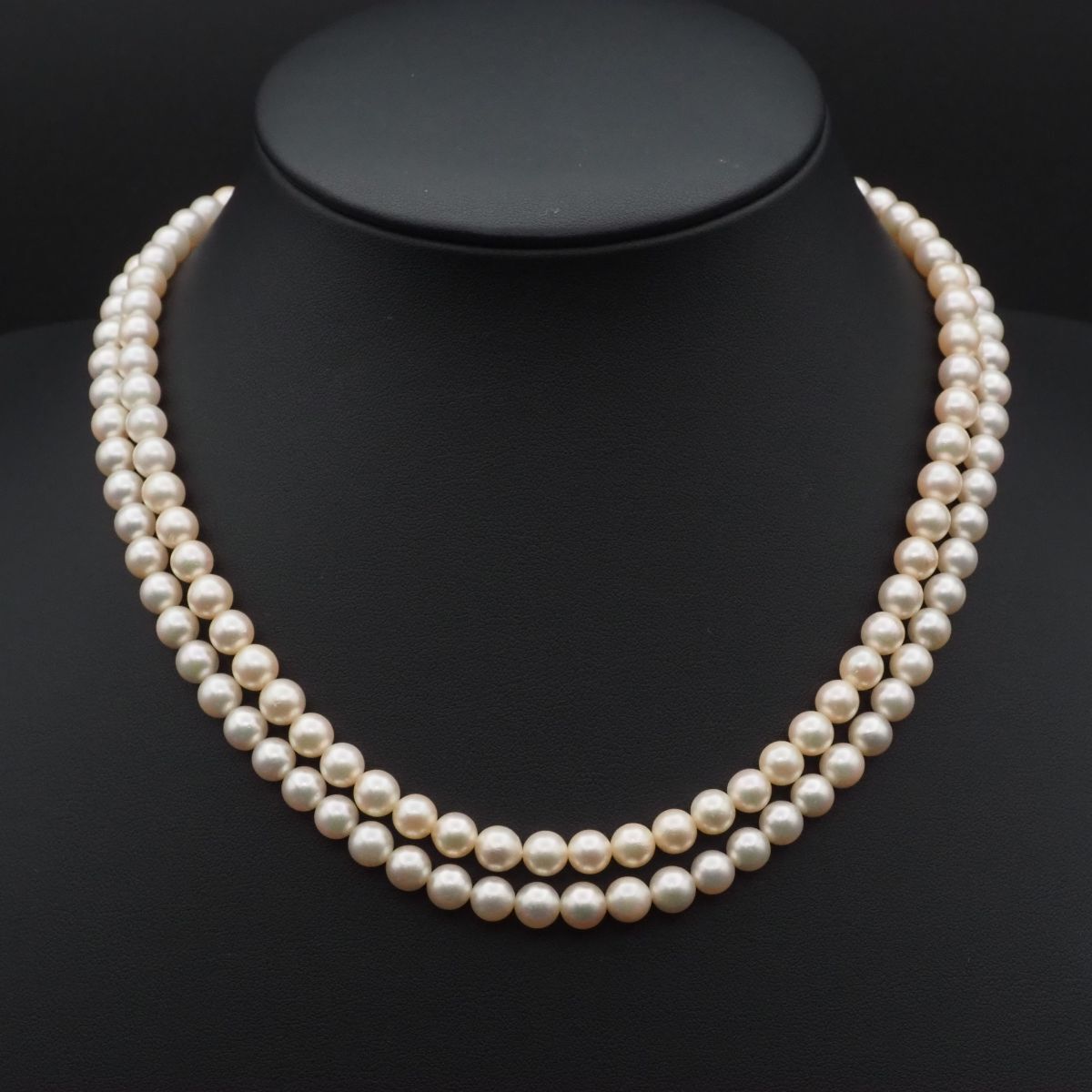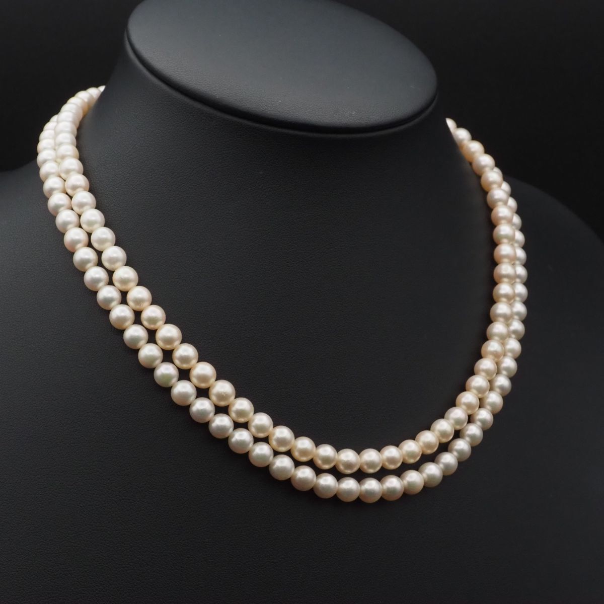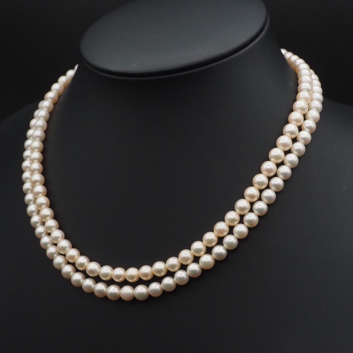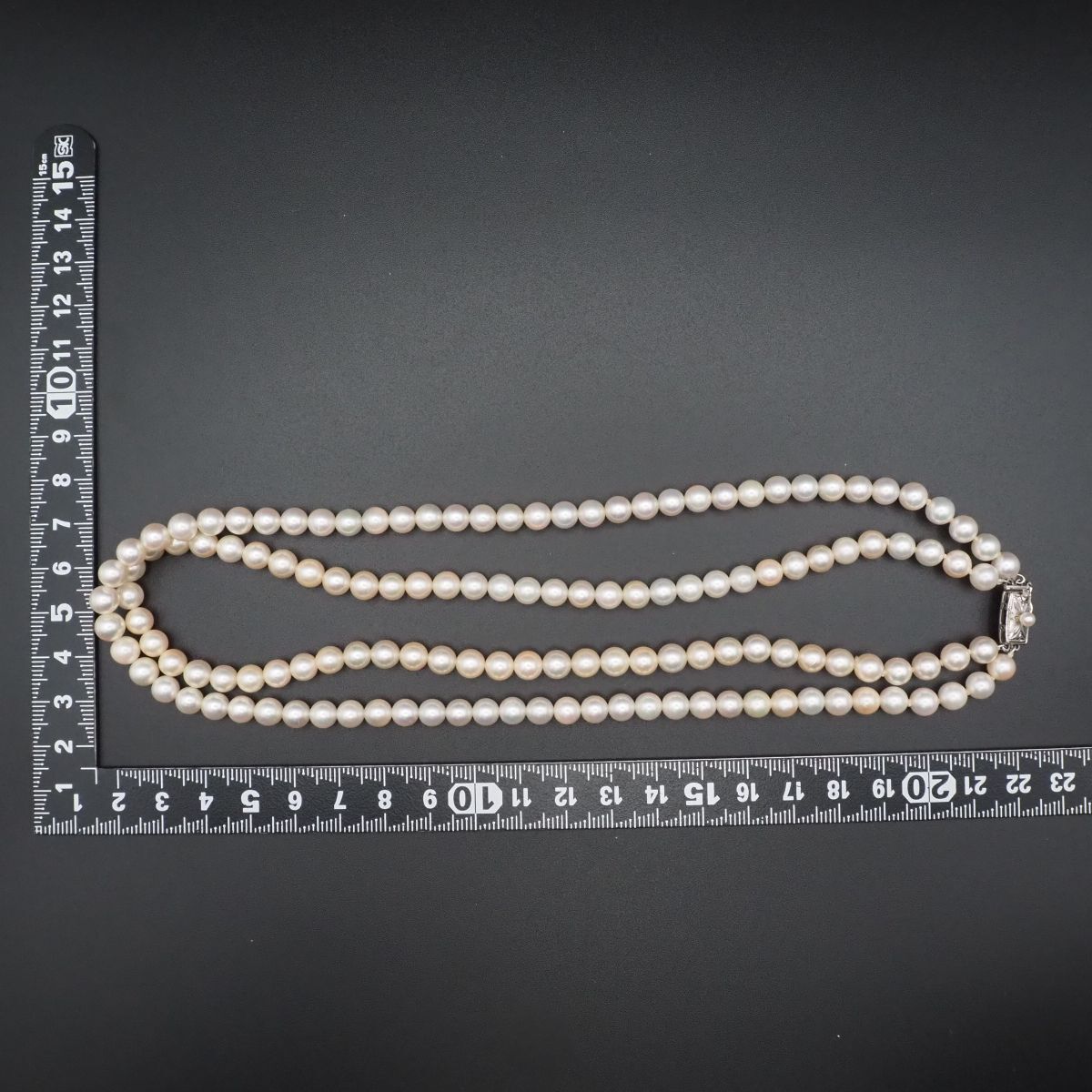 J875 本真珠 6.3mm珠 パール SILVER刻印 ネックレス 2連 デザイン シルバー 6月誕生石