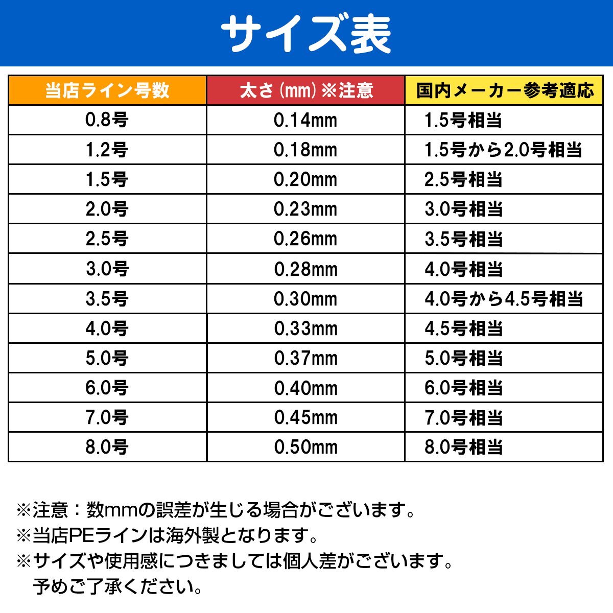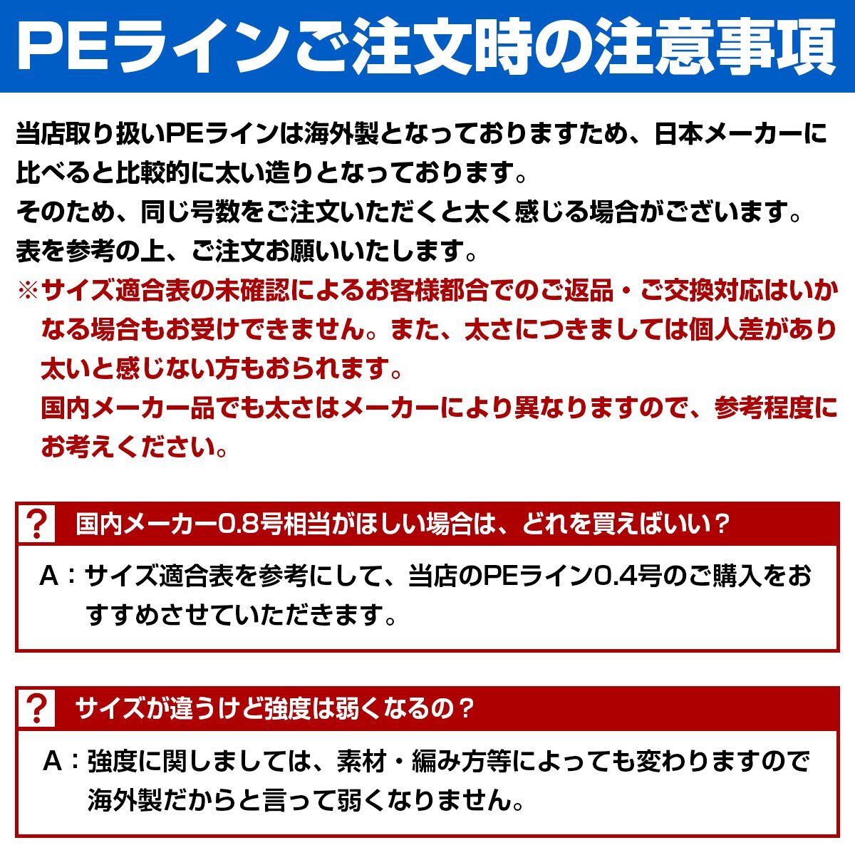 ※当店取り扱いPEラインは海外製のため、日本メーカーに比べると比較的太い造りとなっております。