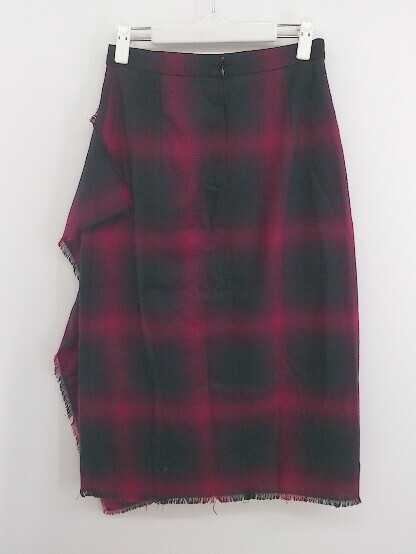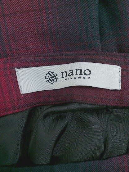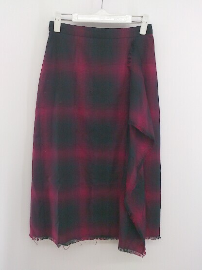 ◇ nano universe チェックフロントスリット フリンジ ロング ナロー スカート サイズ38 ピンク系 ブラック レディース E