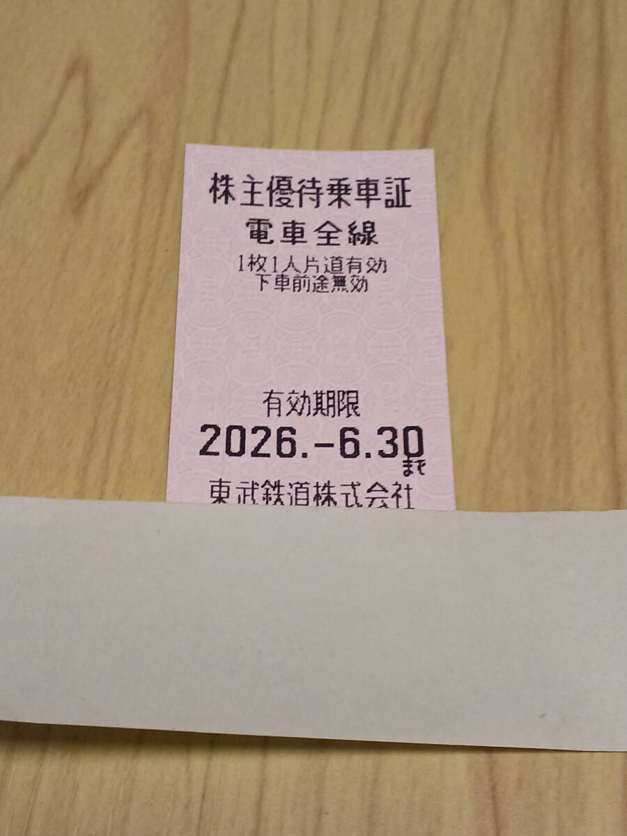 東武鉄道 株主優待乗車証 未使用2026年6月30日まで 送料無料
