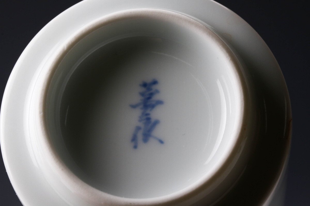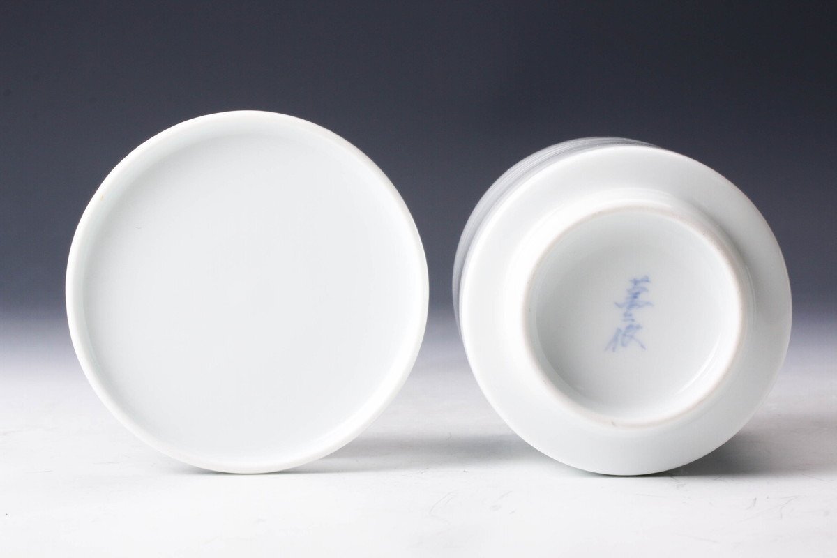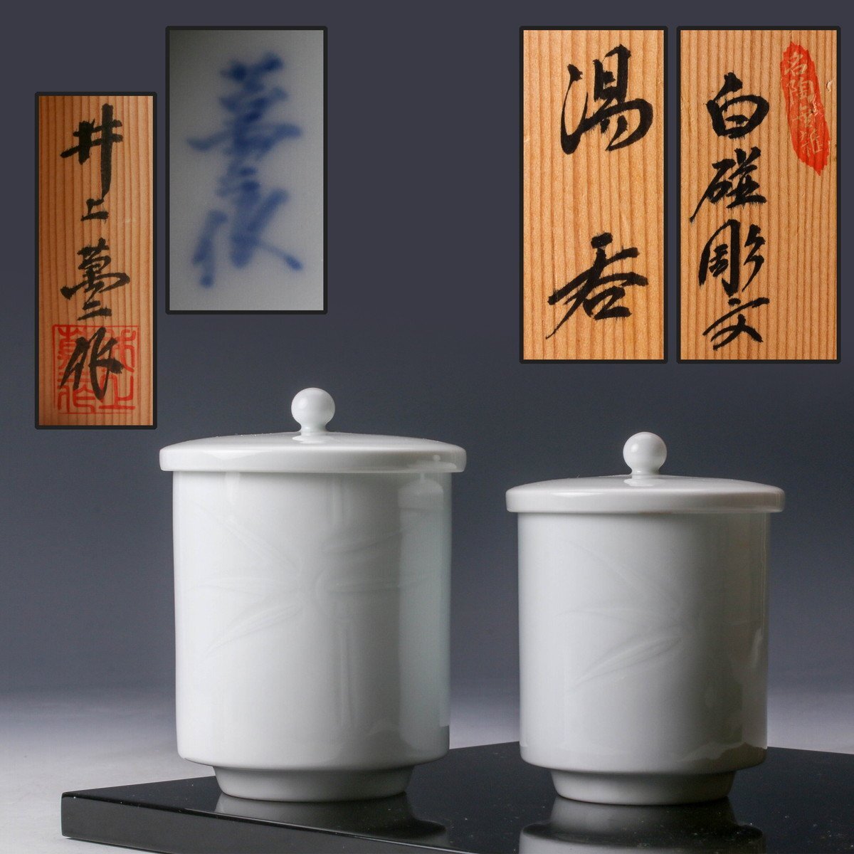 【佳香】人間国宝 井上萬二 本人作 白磁彫文湯呑 二客 共箱 栞 本物保証