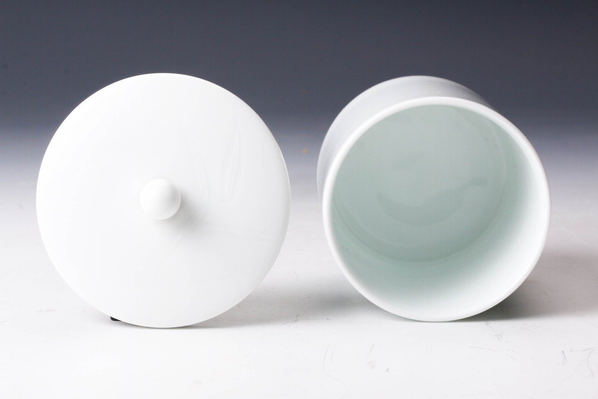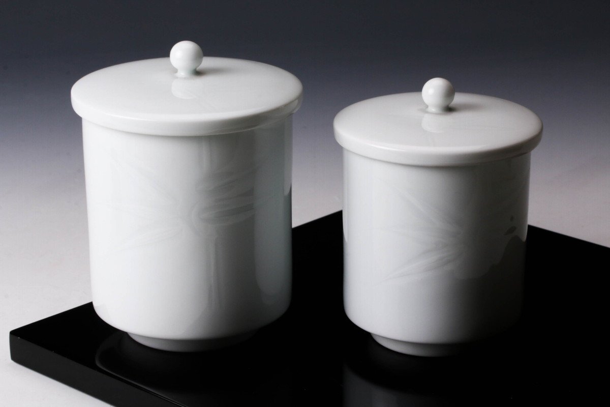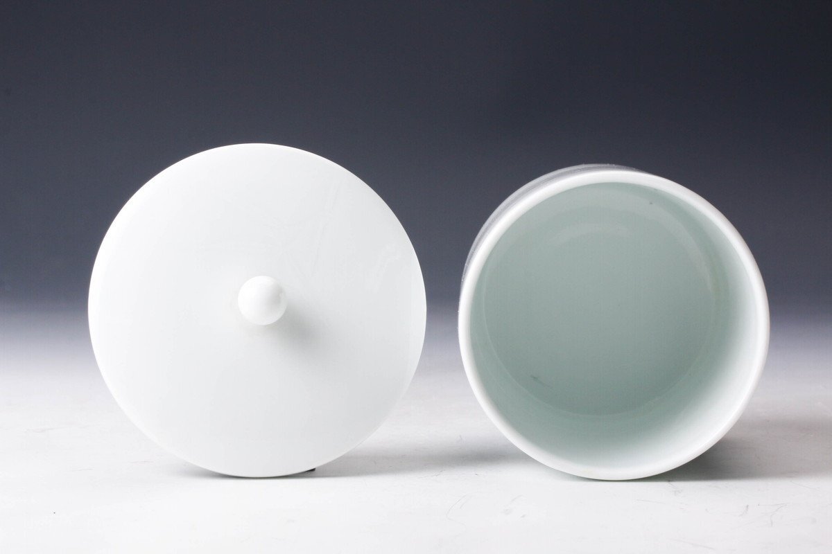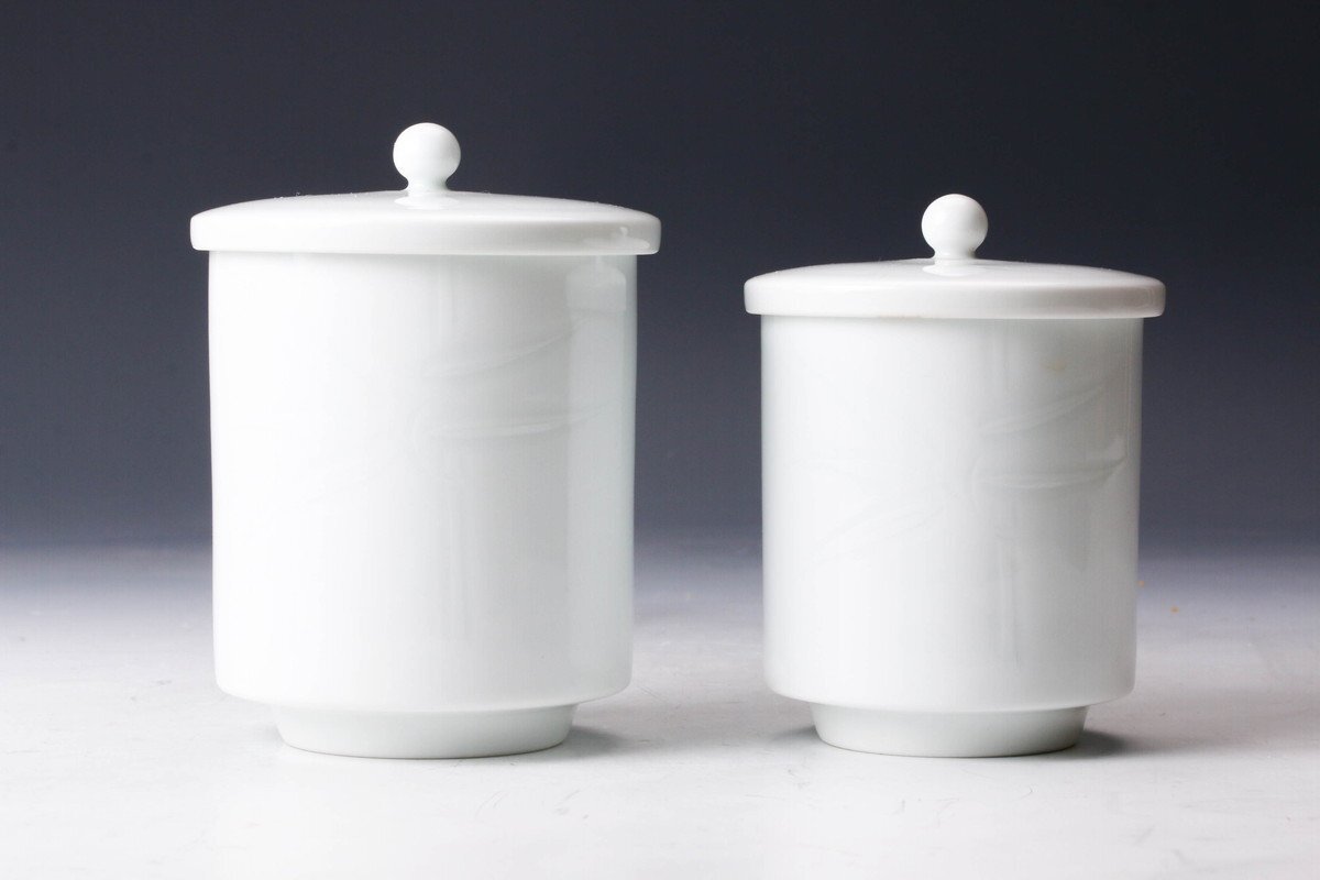 【佳香】人間国宝 井上萬二 本人作 白磁彫文湯呑 二客 共箱 栞 本物保証