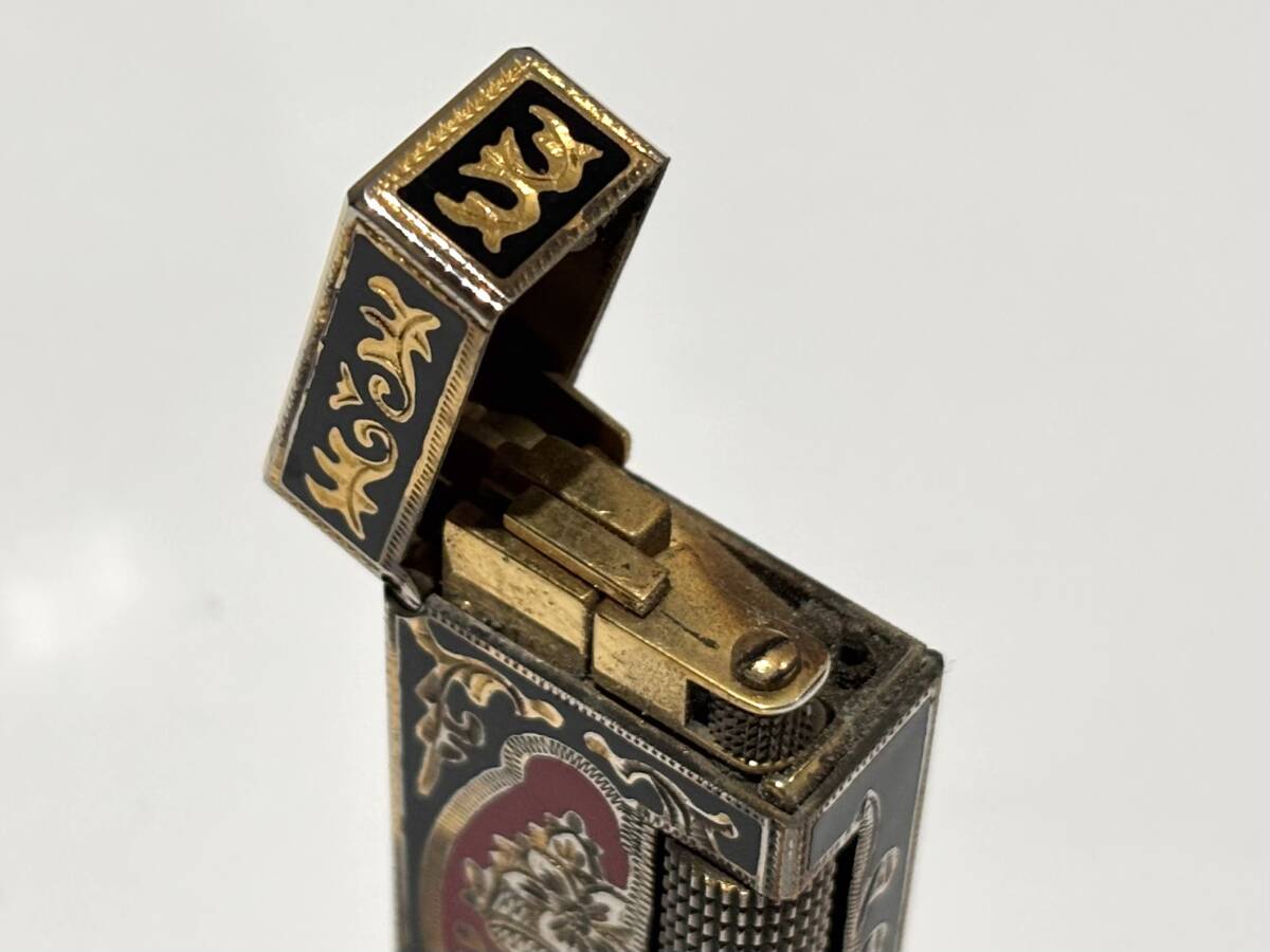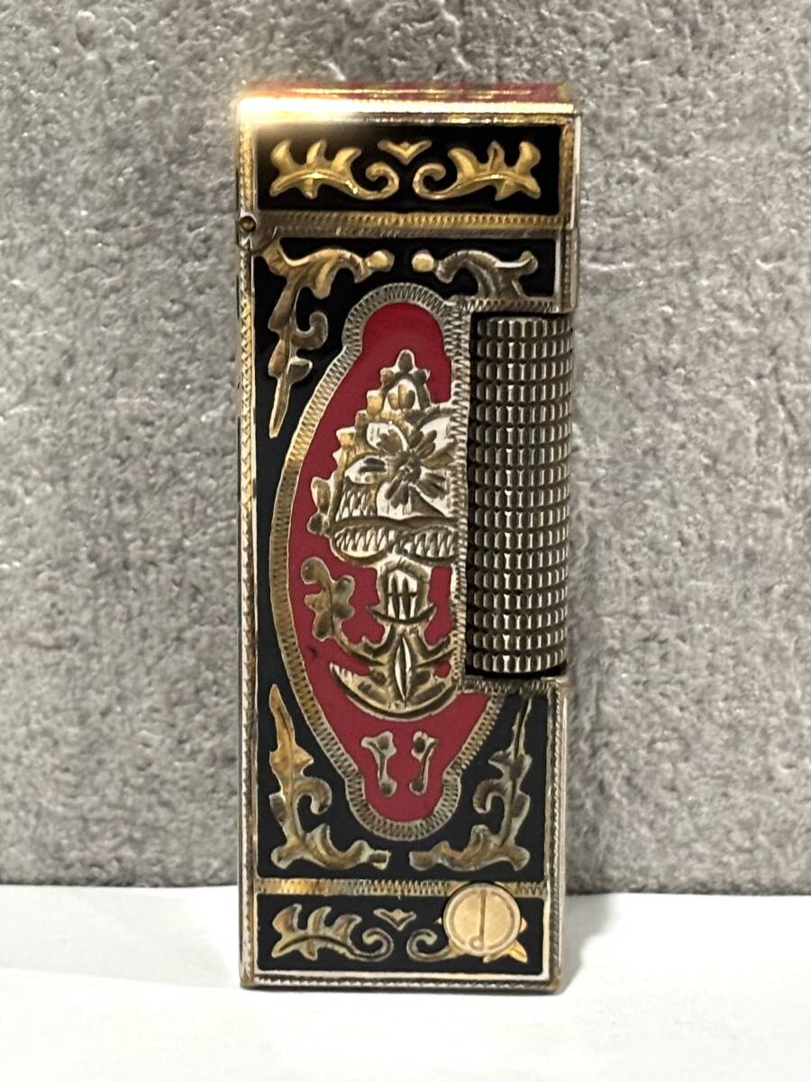 | h639★1円~中古現状/着火未確認【dunhill ダンヒル】ローラー式 ガスライター ロイキング ブラック×レッド×ゴールド 喫煙グッズ 喫煙具 |