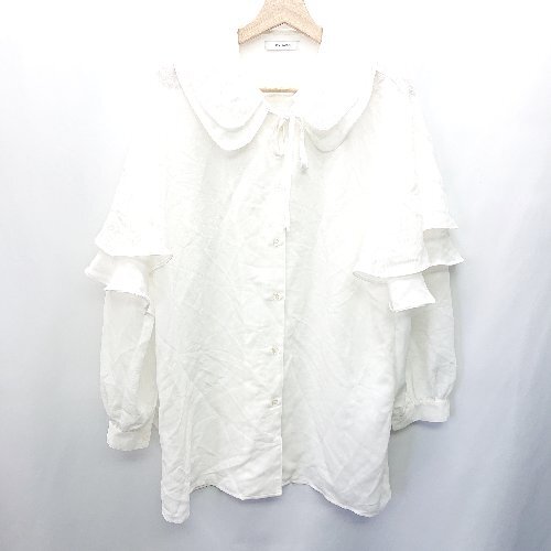 ◇ ⊂ JEANASIS ジーナシス パワーショルダー リボン 長袖 ブラウス サイズF ホワイト レディース E