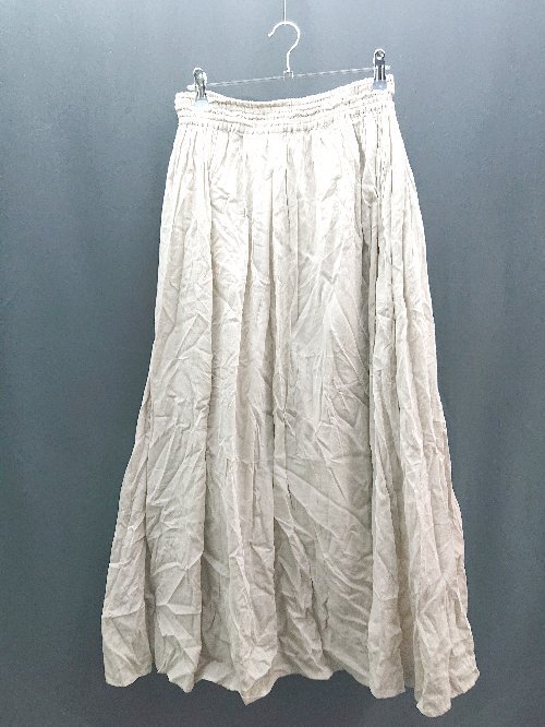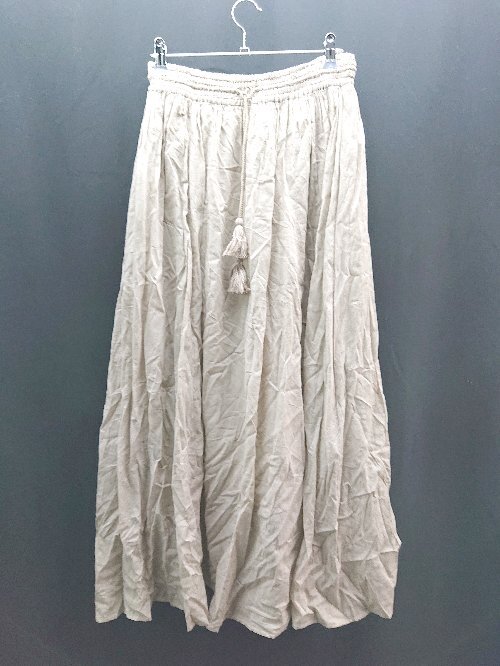 ◇ FREAK'S STORE ウエストゴム 紐調整 ギャザー ナチュラル ロング丈 フレア スカート サイズS ベージュ レディース E