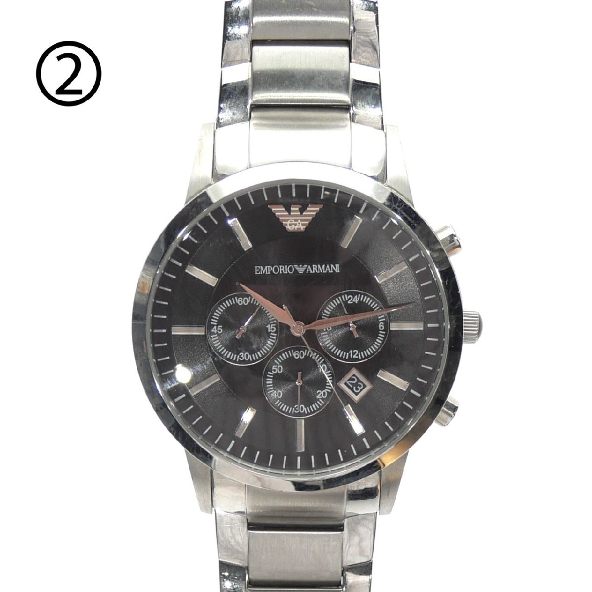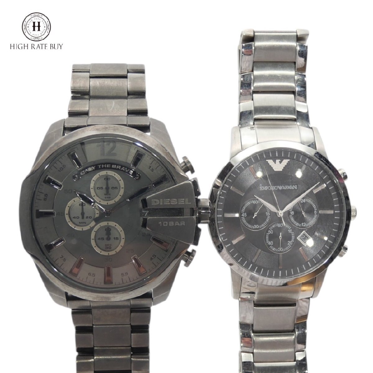 1円スタート 稼動品 腕時計 2点セット DIESEL ディーゼル EMPORIO ARMANI エンポリオアルマーニ クォーツ クロノグラフ デイト ラウンド