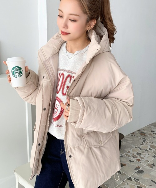 参考商品名:ファイバーダウン袖リブフードブルゾン
