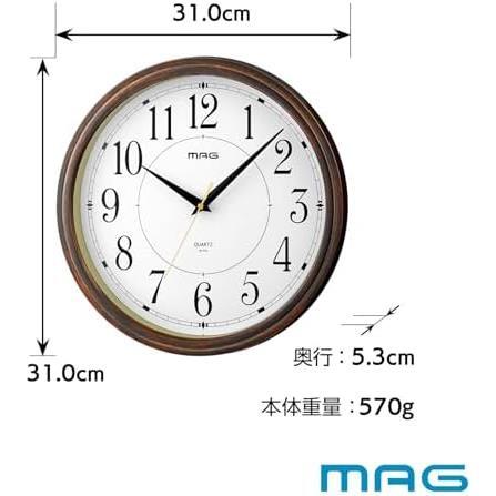 02.ブラウン MAG(マグ) 掛け時計 壁掛け時計 アナログ 静音 連続秒針 木目調 和室 直径31.0㎝ ブラウン 橘 W-772 BR-Z ノア精密