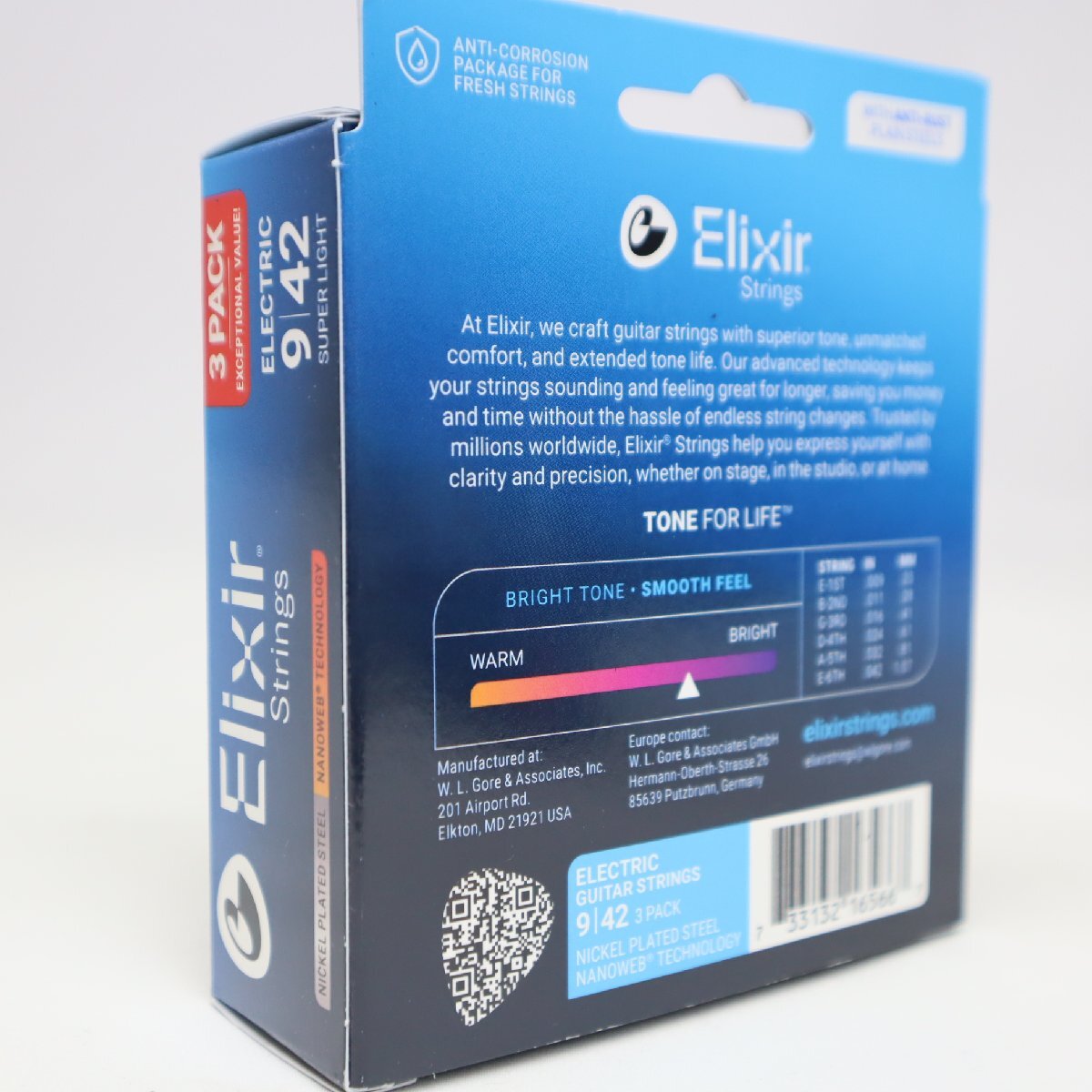 ●Elixir エレキギター弦 NANOWEB Super Light .009-.042 #12002*3SET