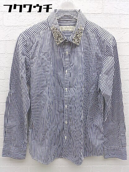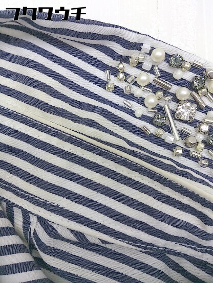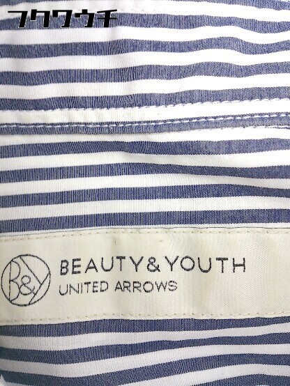 ◇ BEAUTY & YOUTH UNITED ARROWS ビーズ ビジュー 装飾 ストライプ 長袖 シャツ ネイビー系 ホワイト レディース