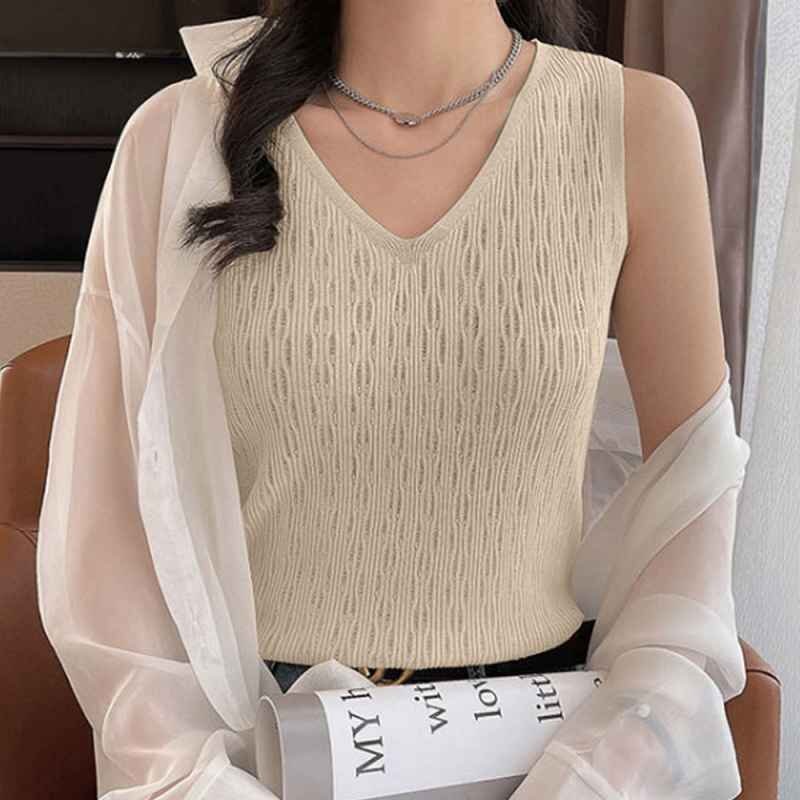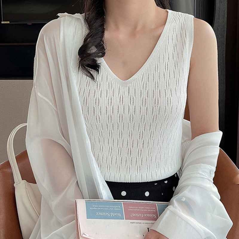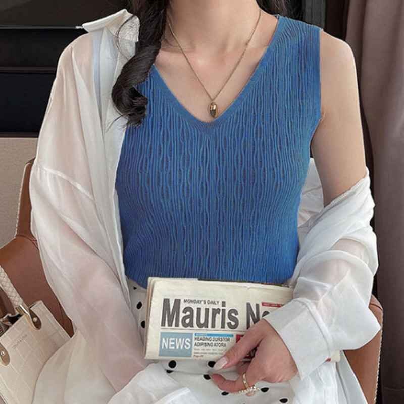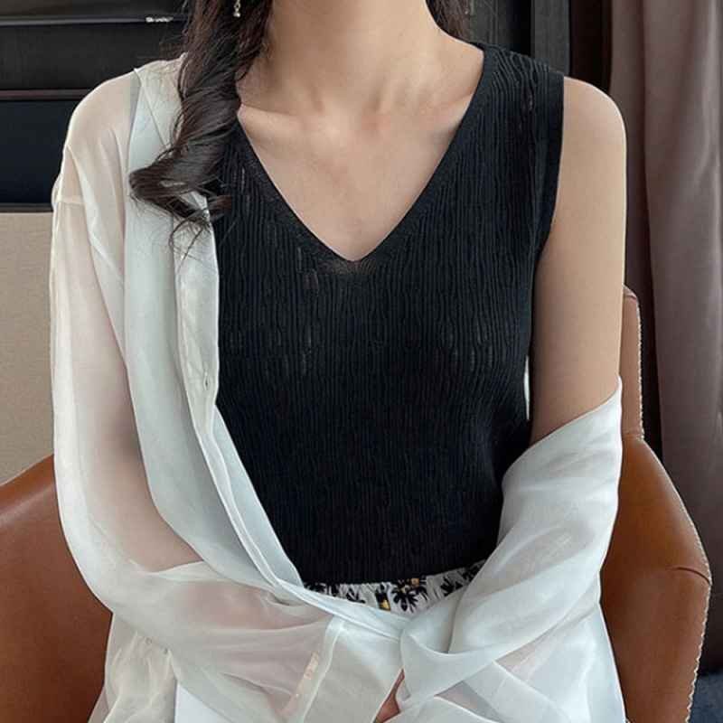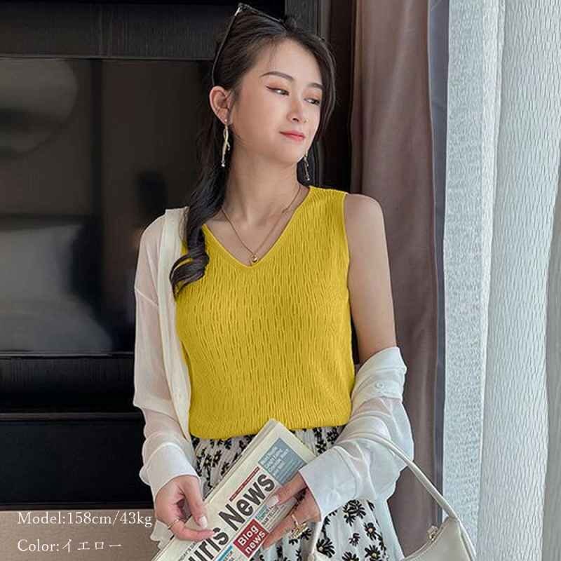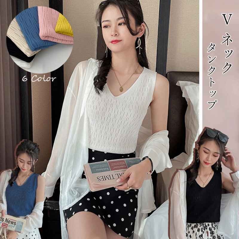 Vラインネックなのでデコルテを綺麗に見せてくれるタンクトップ