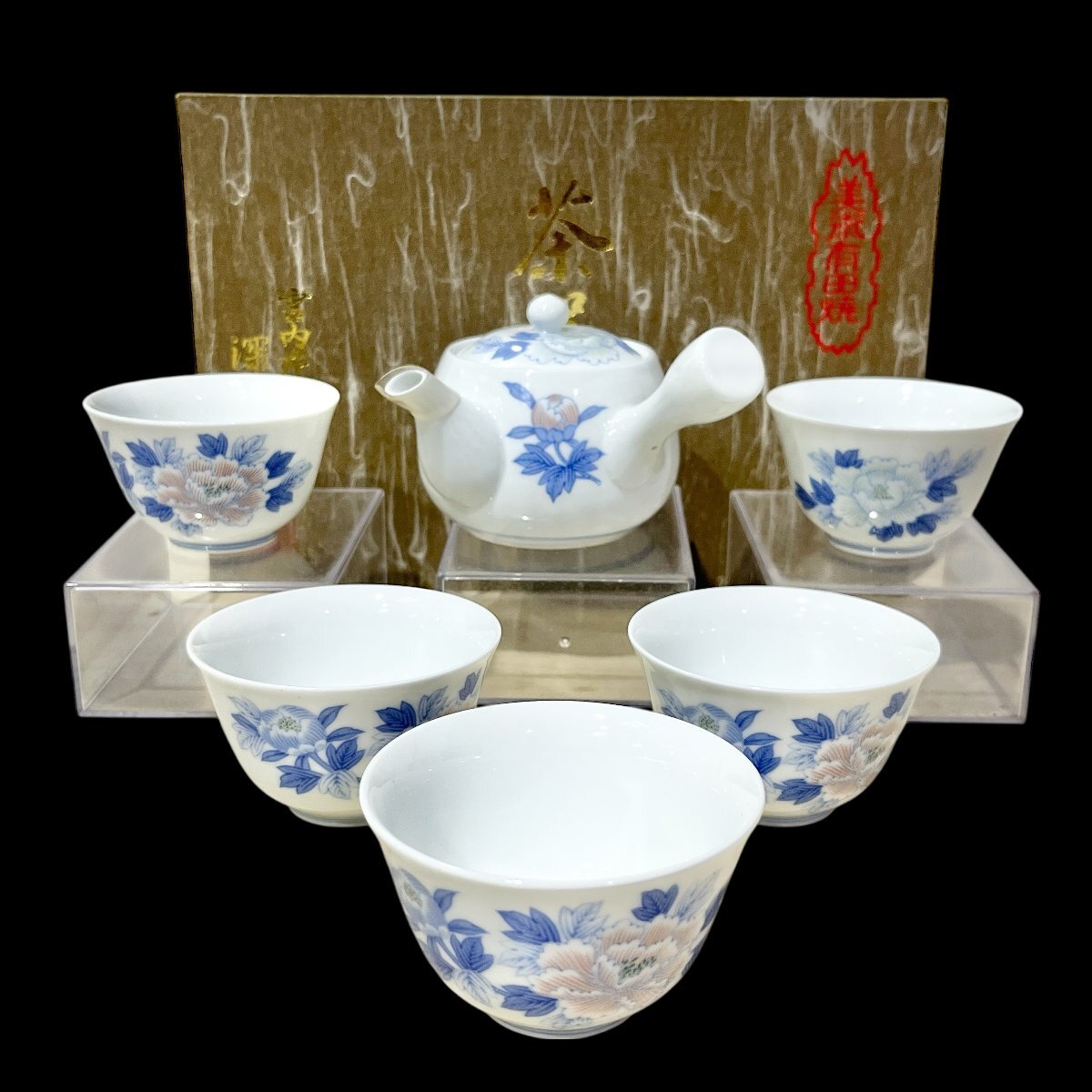 深川製磁 食器 和食器 有田焼 茶器セット 急須 湯呑み 宮内庁御用達 花柄 箱付き 中古品 80サイズ 蘇さ(MtY2416)