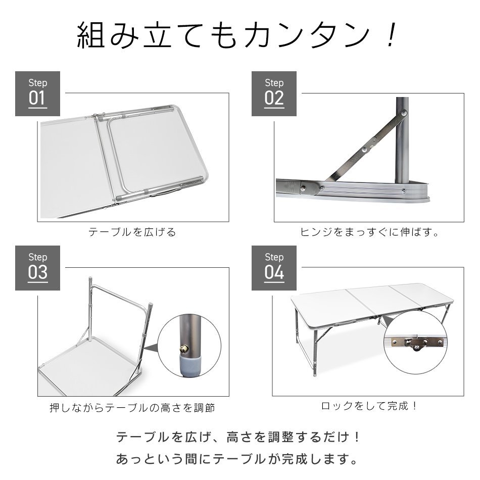 車のトランクに入れる時や持ち運びの際にもとても便利な取っ手付きで持ち運びもラクラク!! サビに強いアルミを使用。 天板には防水加工が施されています。 テーブルは3段階の高さ調節ができ、お好みのスタイルに合わせて「ハイスタイル」「ロースタイル」の2パターンでお使いいただけます。 キャンプ、バーベキュー、お花見などにとても便利。 気軽にアウトドアレジャーをお楽しみいただけます!! 【商品仕様】 折りたたみ式 テーブルサイズ(約):幅180cm×奥行60cm×高さ55cm/62cm/70cm ※高さ3段階調節 カラー:ウッドグレー 収納サイズ(約):幅62cm×奥行10cm×高さ62cm 耐荷重(約):20kg 重量(約):7.2kg 材質:アルミ、MDF(耐熱・耐水加工)、ポリエステル、スチール 【注意事項】 ・初めてご使用の場合、耐久性を高めるために天板がフラットにならず山なりになっております。 適度な力で上から押していただくと改善されますので、お試しください。初期不良ではございません。 ・海外製品で、簡易梱包での輸入のため風防に擦れや多少の小キズなどがある場合がございますが、商品自体には問題ありませんのでご了承下さい。 ・商品は、モニターによって色合いが異なって見える場合があります。 ・仕様・デザインは改良のため予告なく変更することがあります。 |