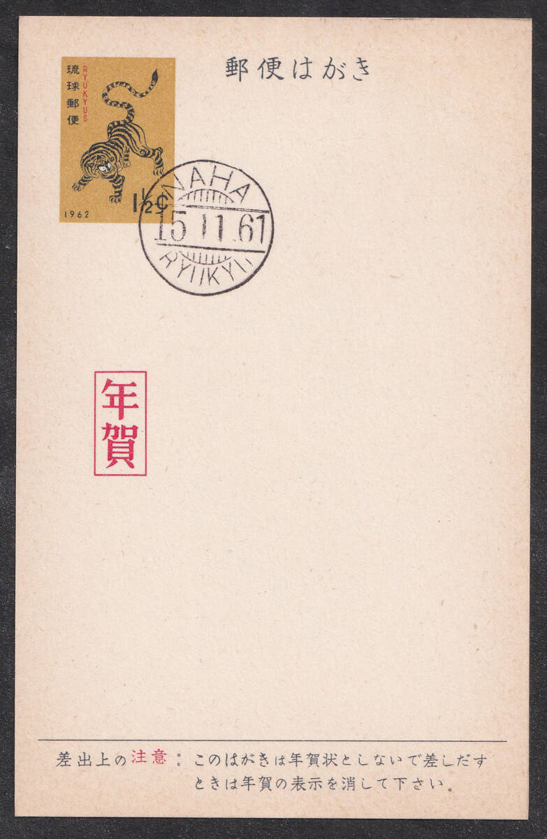 ★早期終了★琉球年賀はがき/1 1/2¢/1962/トラ/初日印/NAHA